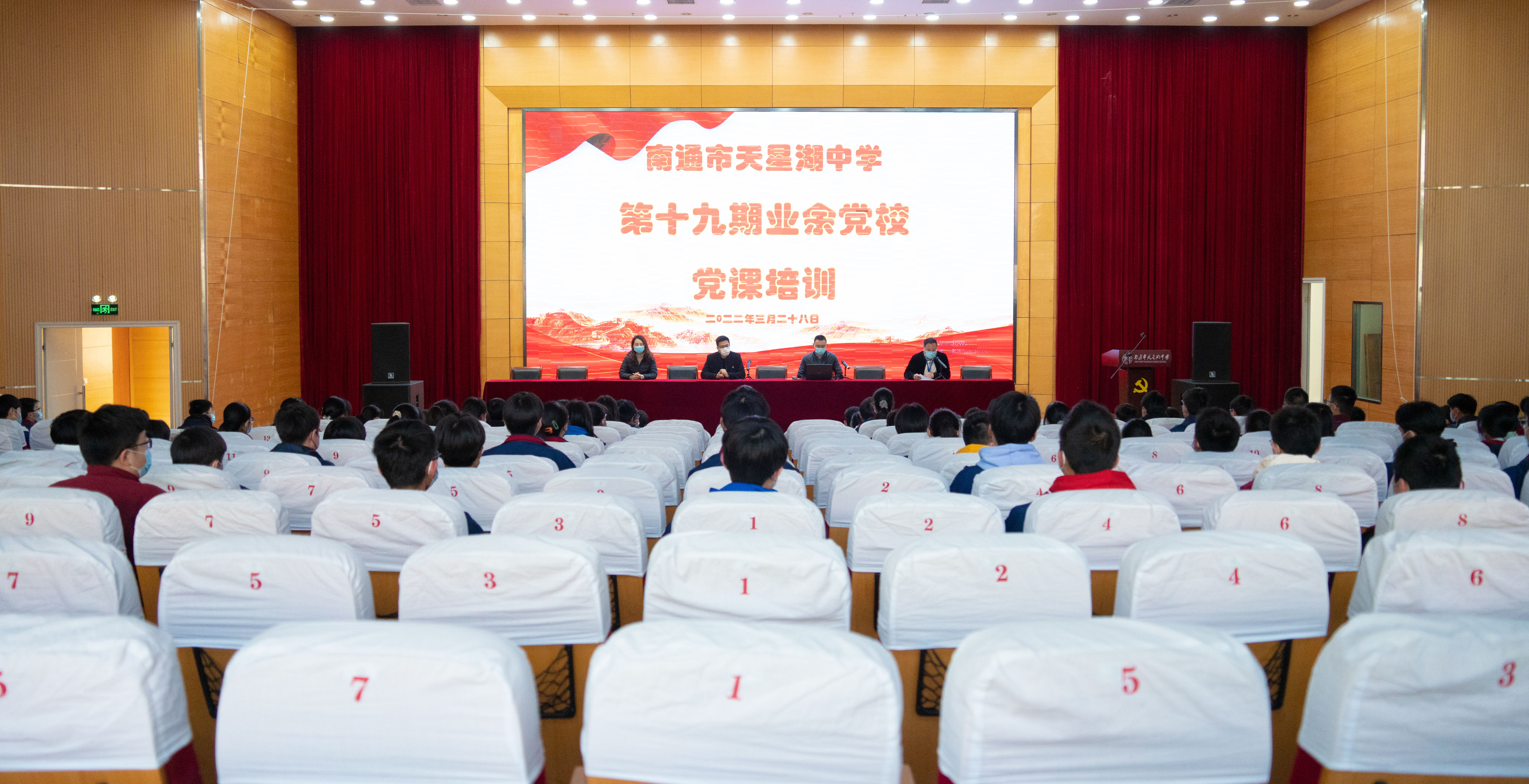 328日中午,我校第十期业余党校在滋兰楼底楼报告厅顺利开班学校党委委员、副校长张建峰同志,党委委员、副校长吴冬杰同志,党政办公室主任刘丹同志团委书记沈亚威同志参加了开班仪式。开班仪式由团委沈亚威书记主持,100多名学员参加了业余党校的党课培训。