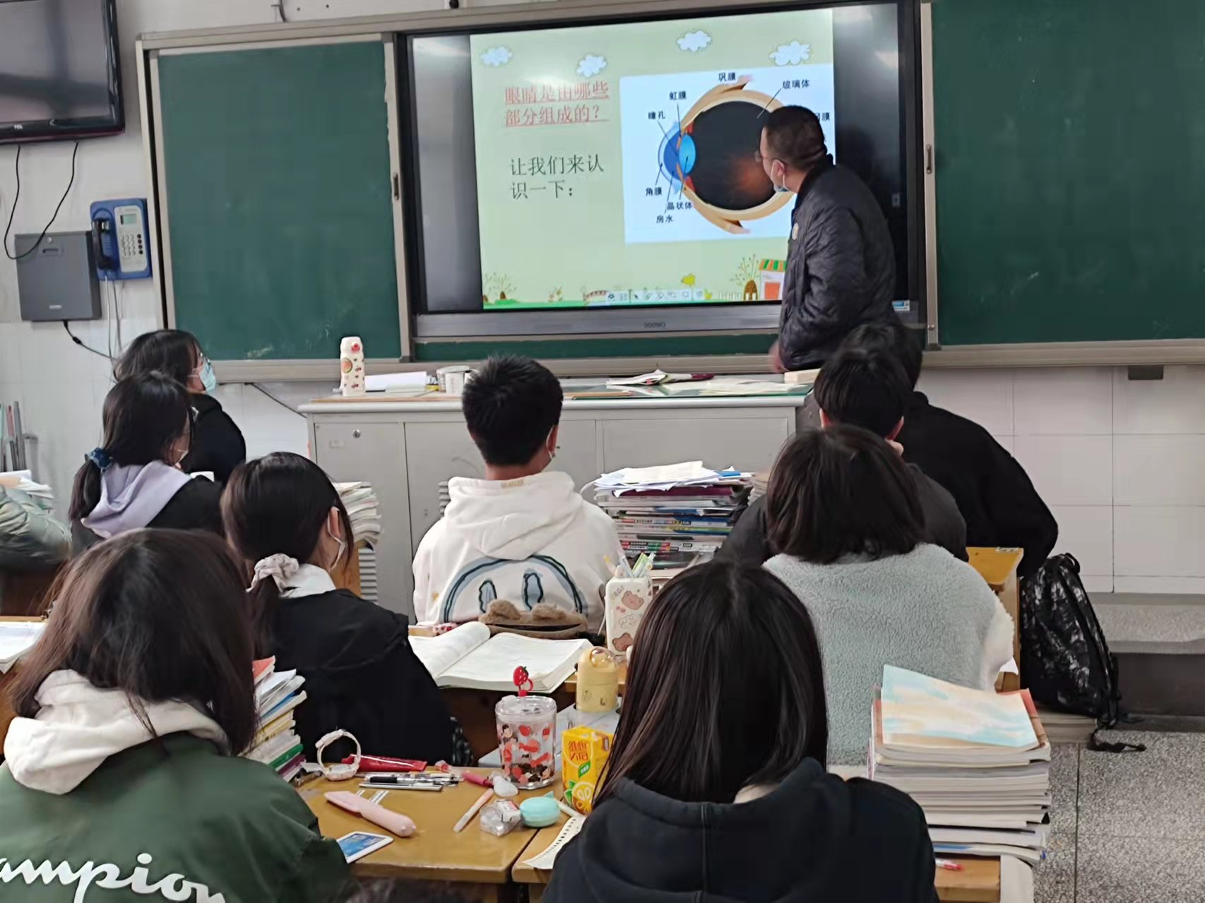 班会上,学生重新认识了眼睛,学习了保护眼睛的重要性以及近视的危害。近视会给学生的生活和学习带来不便,在高考升学时很多的专业和工作对视力有严格要求,视力不佳的考生不能填报某些对视力有严格要求的专业。