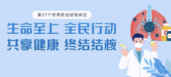 今年3月24日是第27个“世界防治结核病日”,今年宣传活动主题是:生命至上、全民行动、 共享健康、终结结核。
