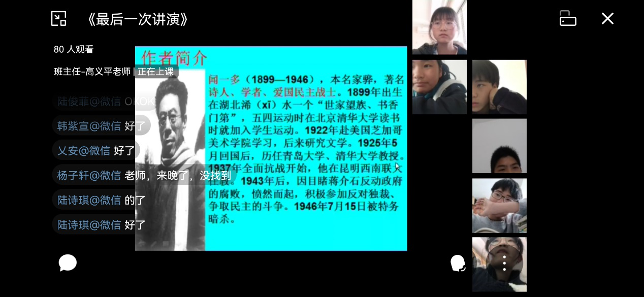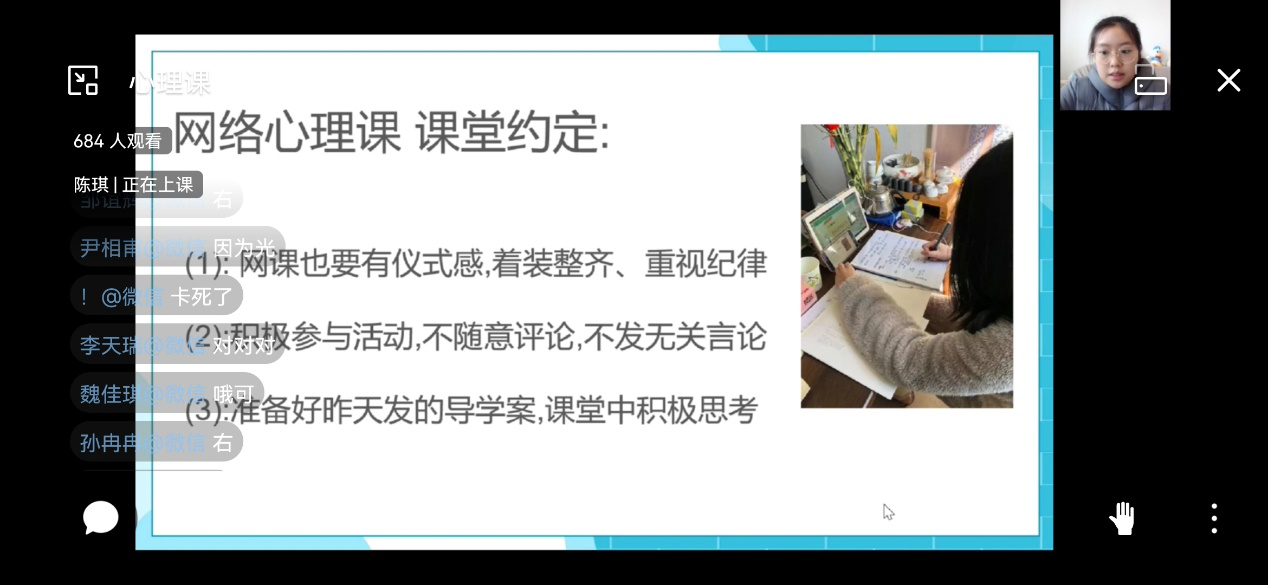 各科老师们精心整合教学资源,保证所有学科老师们或录制视频,或自己制作课件,让学生学有所依,精心布置作业。课前老师们会提前进入课堂,督促学生准时进班,做课前准备。课堂上老师们与学生实时互动,分享展示。与课堂上依然可以看到学生高举的“小手”,依然可以听到洪亮的回答,依然可以展示习题作业。