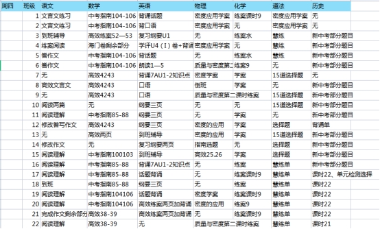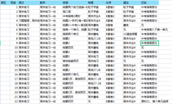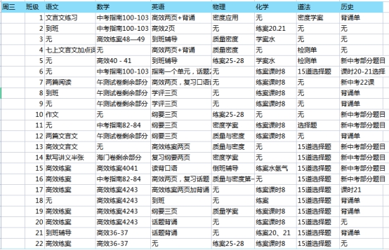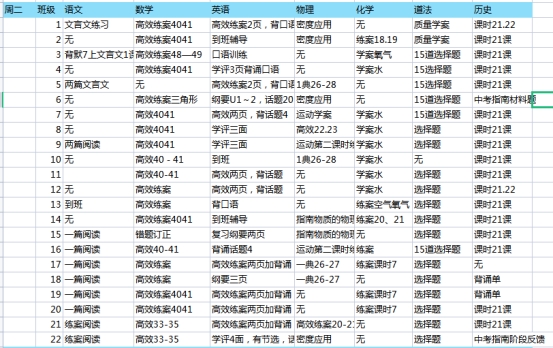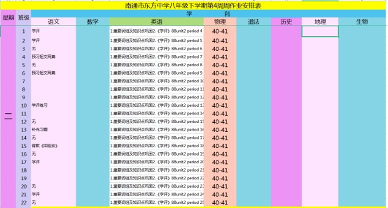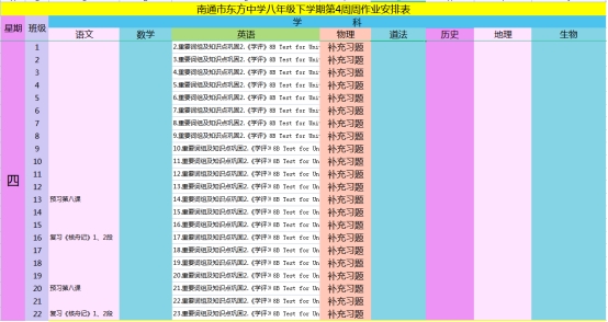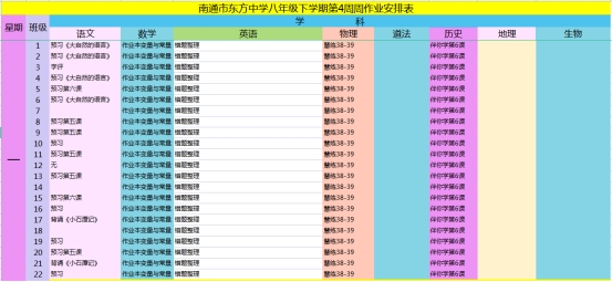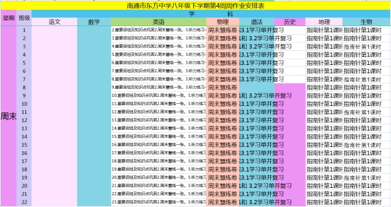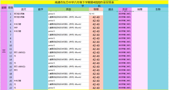 南通市东方中学2021~2022学年度第二学期第4周作业安排表