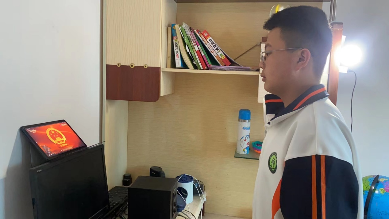 上午7时,升旗仪式准时开始。屏幕里,鲜艳的五星红旗伴随着雄壮的国歌声缓缓升起;屏幕外,同学们身着整洁衣服,立正,行注目礼,向伟大的祖国、英雄的中国人民致敬!