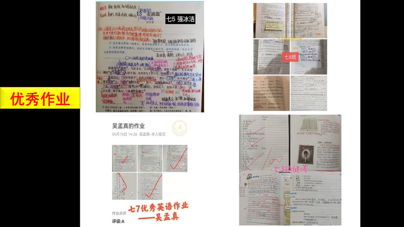 随后,教务处仇宇隆主任向同学们展示了一些网课期间的优秀作业,就上一周的线上学习进行了简要总结,并对在网课学习中表现优秀的同学进行了表彰。