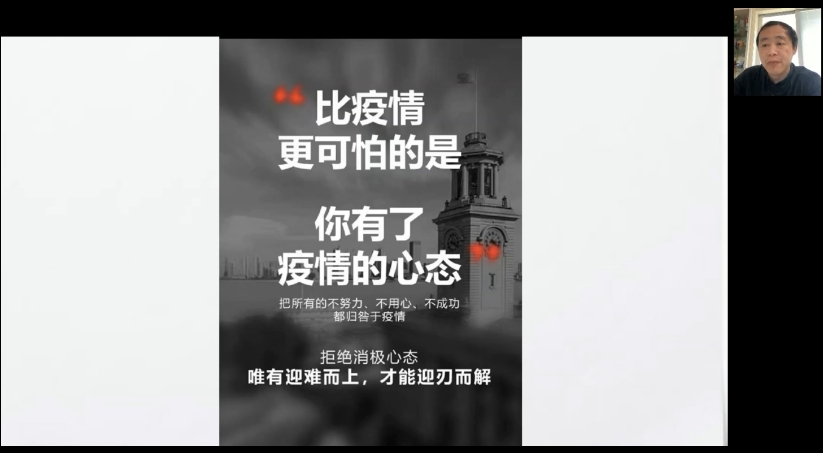“苟日新,日日新,又日新”。疫情没有为同学们的成长按下暂停键,所以我们也不能因为疫情自己按下学习、生活的懒惰键。相信在此次特殊的升旗仪式后,同学们定能够以更饱满的精神状态、更坚定的信心、更坚韧的毅力投入到下一阶段的学习生活中去。