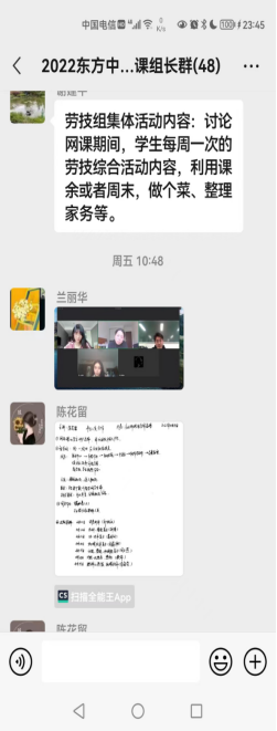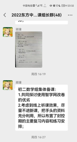 英语备课组的老师们紧跟其后,三个年级分别组织备课组会议,讨论上课进度内容以及中午阅读作业的布置,统一进度,介绍如何利用智学网布置作业和批改作业,交流线上教学面临的困境(电脑老化,卡顿严重),讨论接下来的进度安排,交流线上批改作业的招数,老师们都大有所获。
