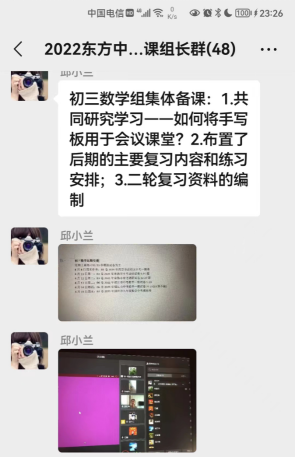 集体备课活动中,备课组的每位老师积极参与,建言献策,集思广益,结合教学实际和学情提出了有效的教学方法、效率更高的网上教学模式,统一策略和进度,并且交流了作业批改和讲解的策略,交流了重难点,成功实现本次集体备课的目标,有力的保证了线上教学的效率和质量。