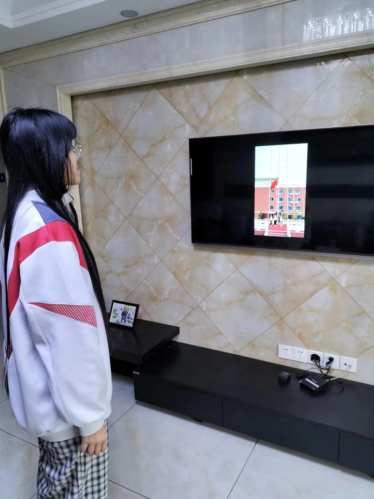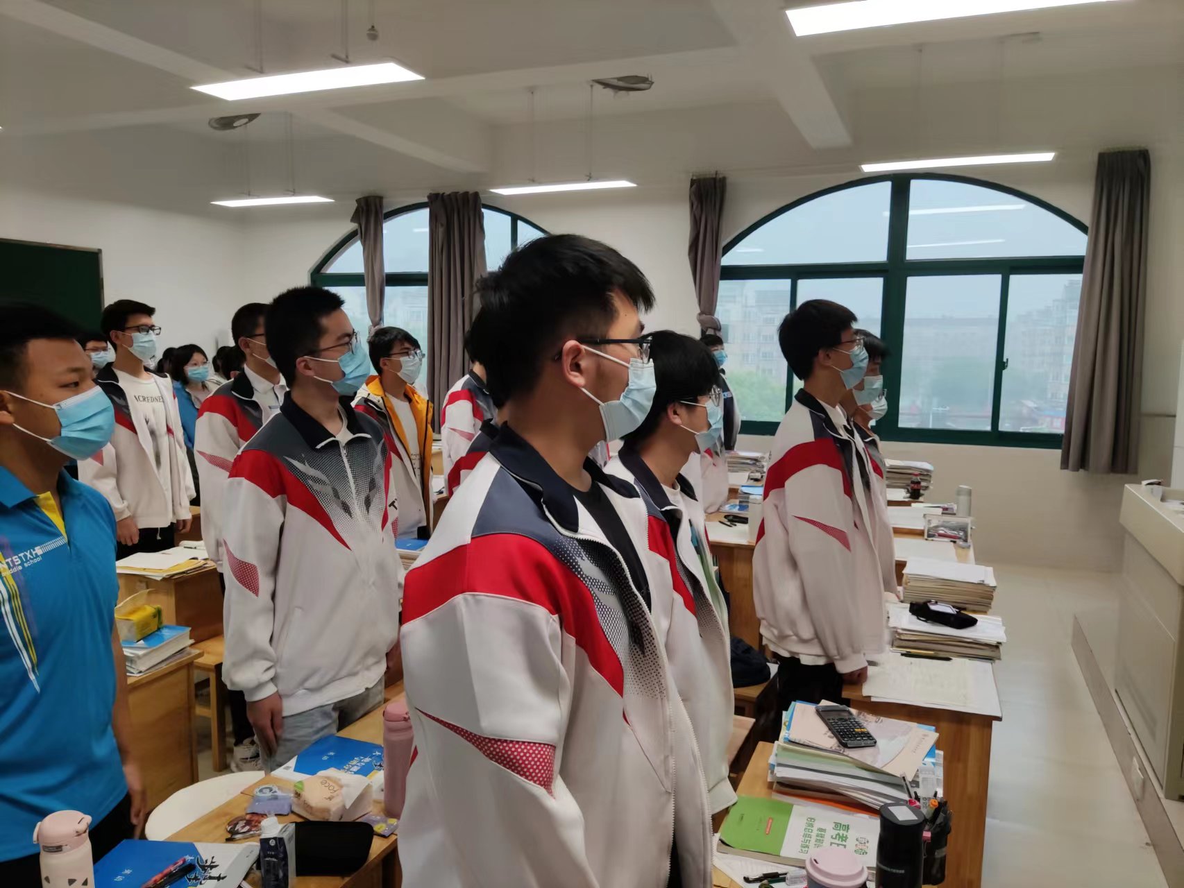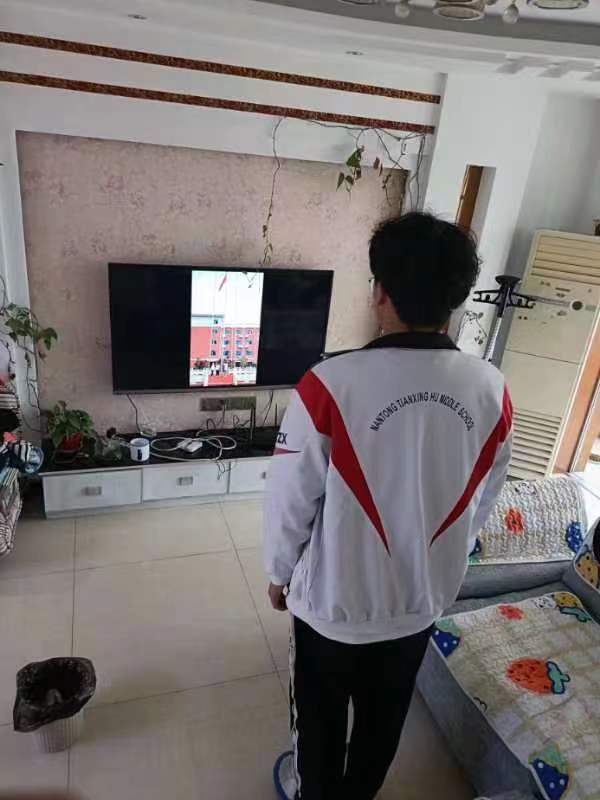 本次升旗仪式由于疫情防控需要,改为线上进行。高三的同学们在教室举行升旗仪式,高一、高二的同学们居家观看视频。伴随着屏幕里冉冉升起的五星红旗,屏幕外,身处南通市不同地方的两千多名师生,立正敬礼,高唱国歌,用实际行动表达爱国之情。