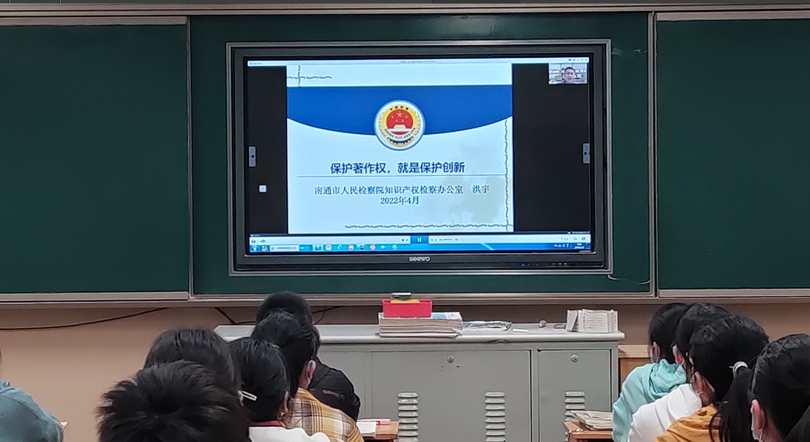 为了培养学生对知识产权的兴趣,加强他们对知识产权的了解,提升我校师生保护知识产权的意识,4月25日,南通市人民检察院洪宇检察官助理在竹行中学开展了“保护著作权,就是保护创新”线上讲座活动。