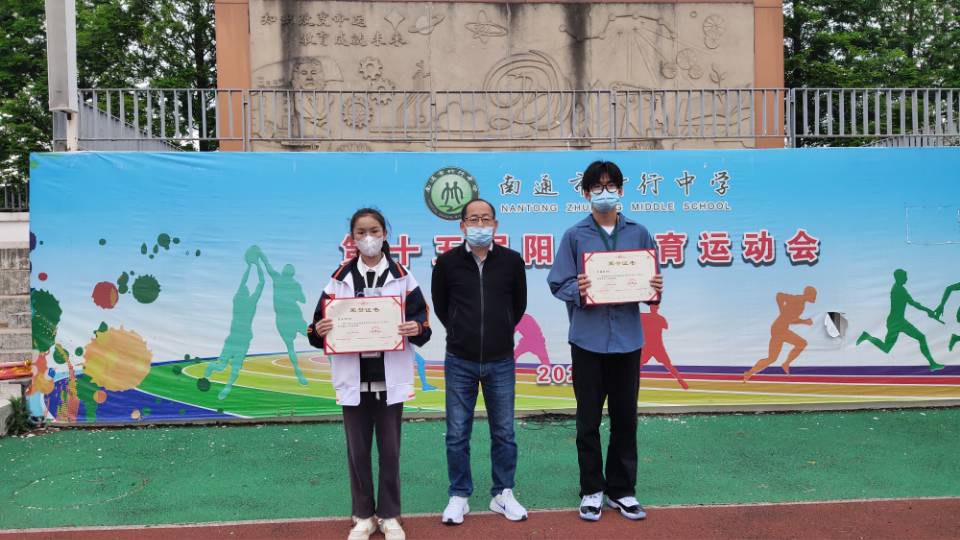 接着,政教处黄伟健主任就网课以来的学生表现进行总结,并宣读网课期间表现突出的优秀学子名单。随后,在庄重而欢快的音乐声中,黄海荣主任为九4班许振超和八7班陈欣怡颁发了“南通经济技术开发区三好标兵”证书。