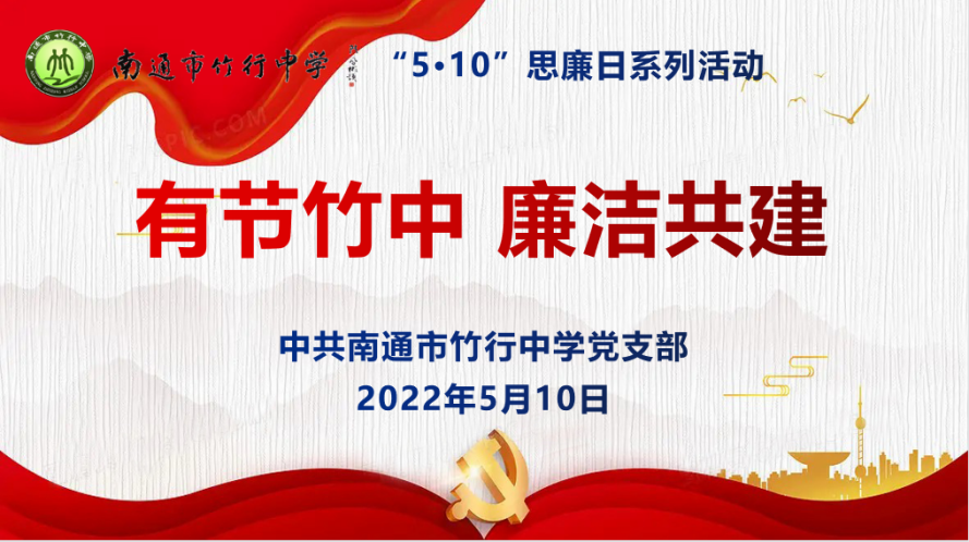 【竹行教育·有节党建】有节竹中,廉洁共建 ——竹行中学开展“5·10”思廉日系列活动