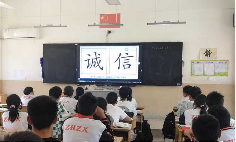 班会活动中,一段关于“一言九鼎”由来的视频吸引了同学们,拆解“诚信”两字,“言而能成谓之诚,人守诺言就是信”一番话让学生深刻明白言而有信,言出必行才是真正的诚信。