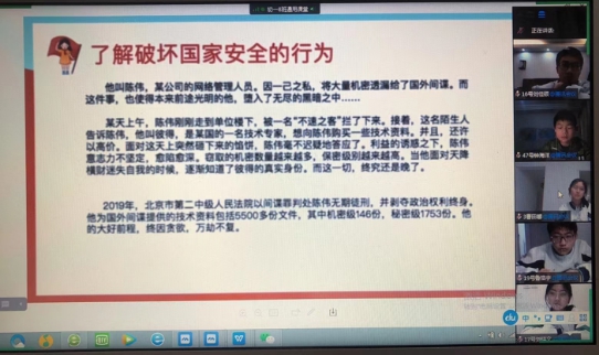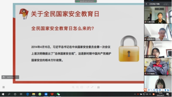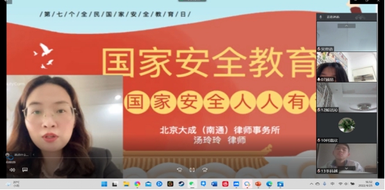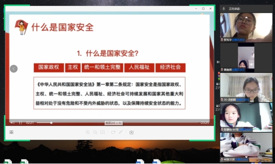 本次活动通过录播的形式开展。首先,汤律师向同学们介绍了全民国家安全教育日的由来及其现实意义,讲述了国家安全教育的主要内容。