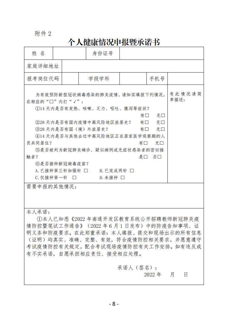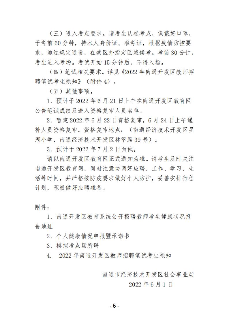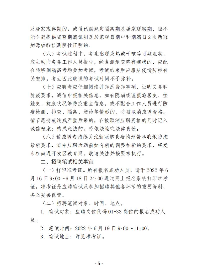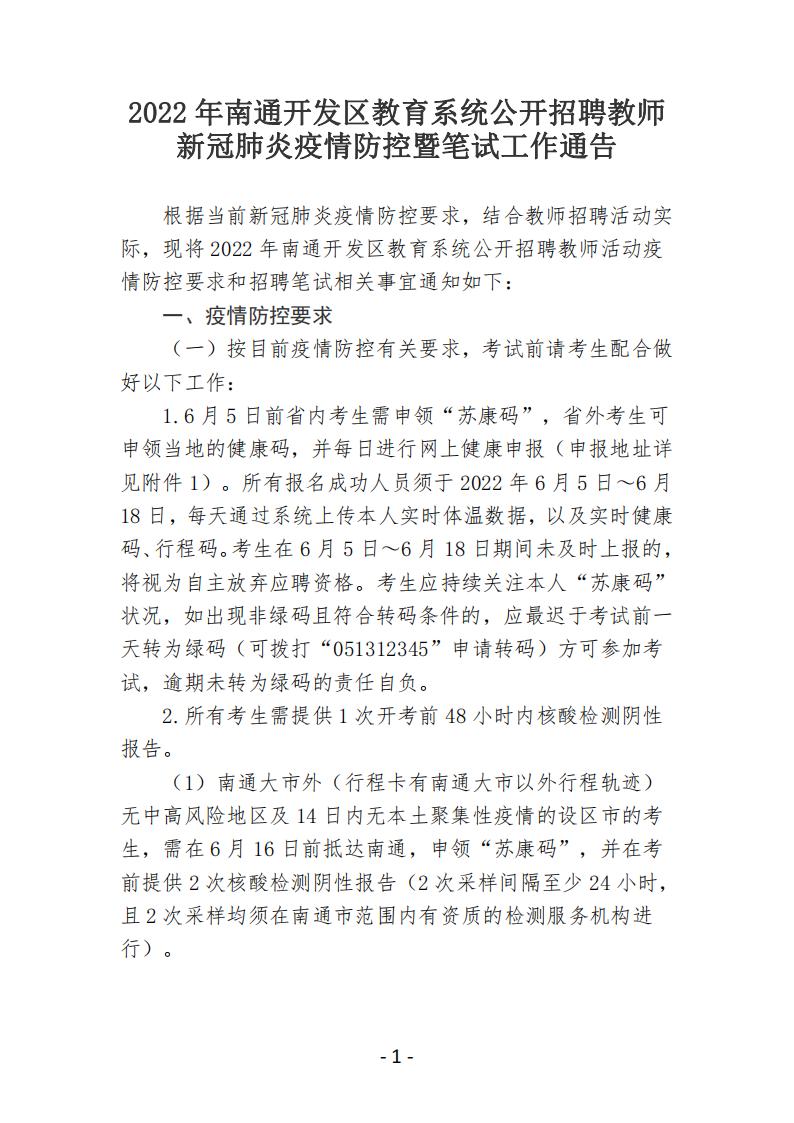 2022年南通开发区教育系统公开招聘教师 新冠肺炎疫情防控暨笔试工作通告