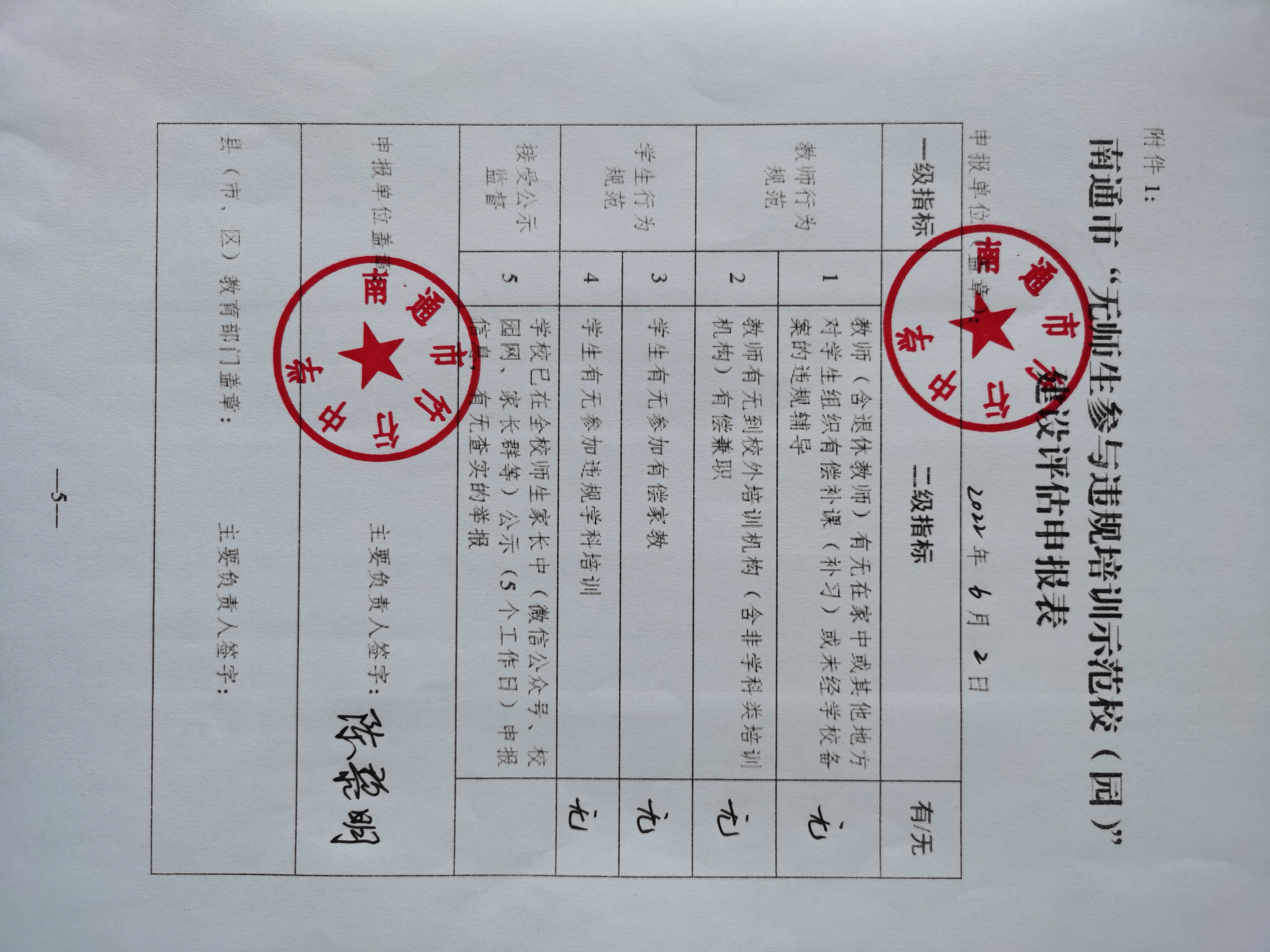 南通市“无师生参与违规培训示范校(园)”建设评估申报表