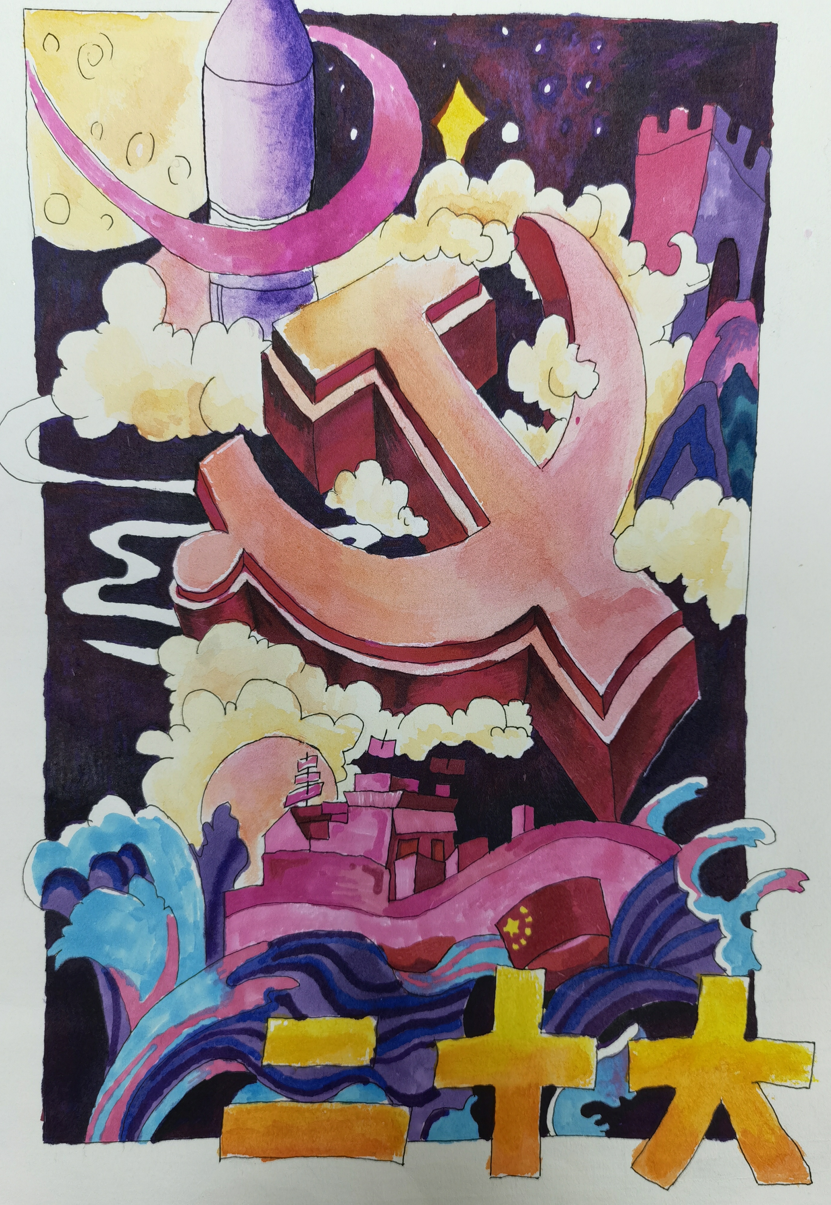 为弘扬爱国主义精神,激发未成年人艺术兴趣,为党的二十大胜利召开营造良好文化氛围,我校响应市教育局、民政局、团委、妇联和未成年人救助保护中心号召,开展“童绘一幅画 共祝二十大”绘画作品征集活动。