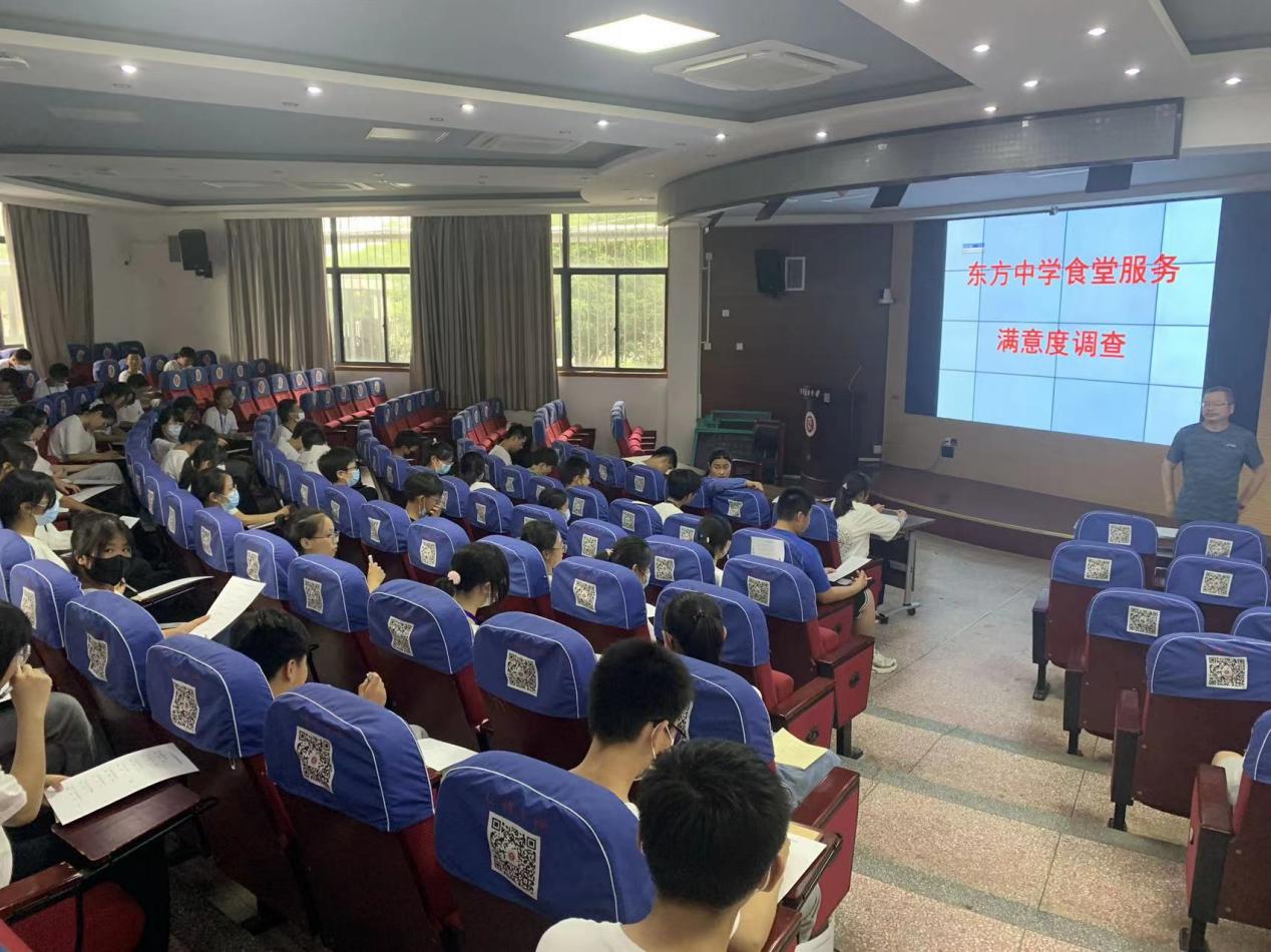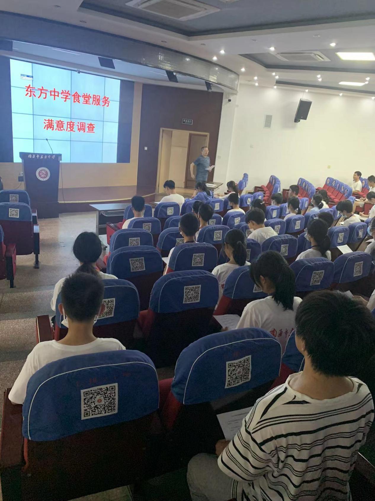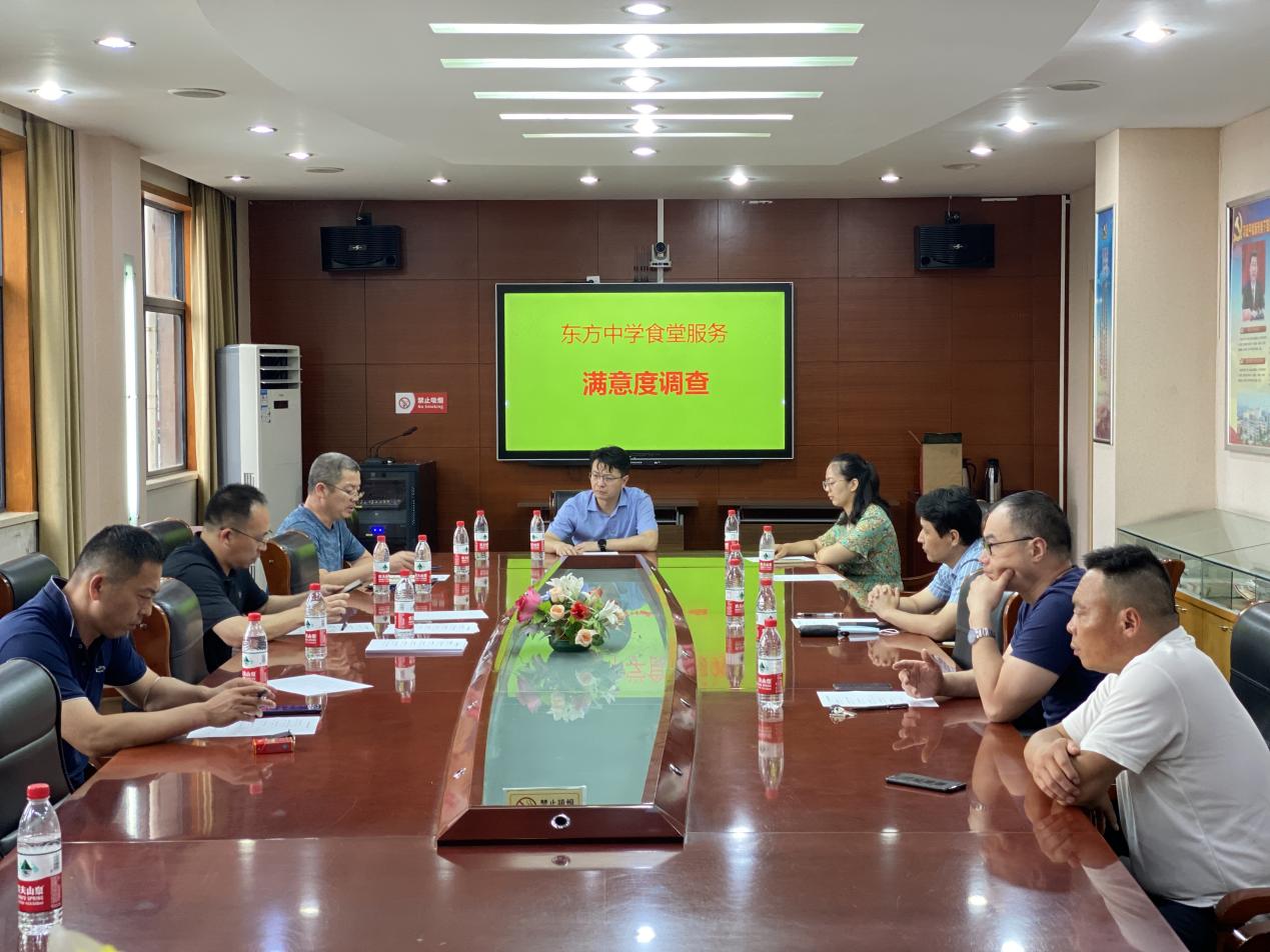 学校食堂服务满意度调查会上,就学校食堂在饭菜质量、品种、价格、卫生、服务、环境等方面的情况进行了询问及问卷调研,了解师生的真实想法。校领导也定期到食堂了解学生伙食情况和满意情况。