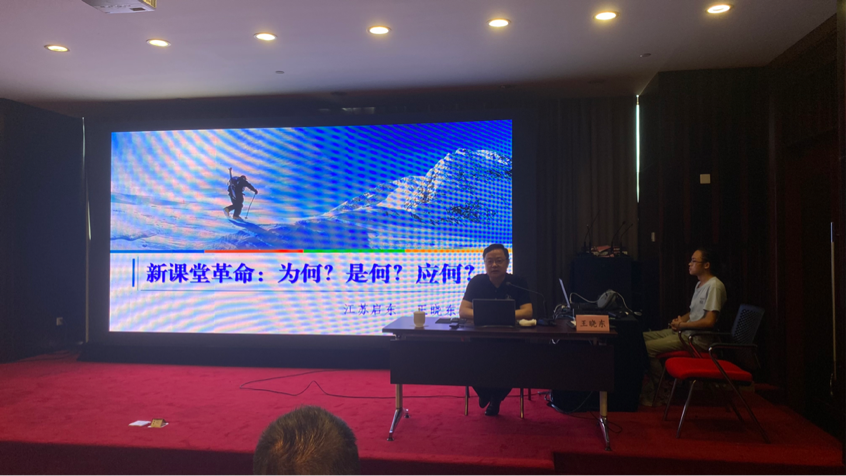 学习的第二站,是启东市教师发展中心主任王晓东为教师们带来的《新革命课堂:是何?为何?何为?》的讲座。王主任从时势要求、范式构建和效能思考三个方面论证了课堂革命的必要性和重要性。与会教师们积极参与,互动热情,展开了一场头脑风暴。