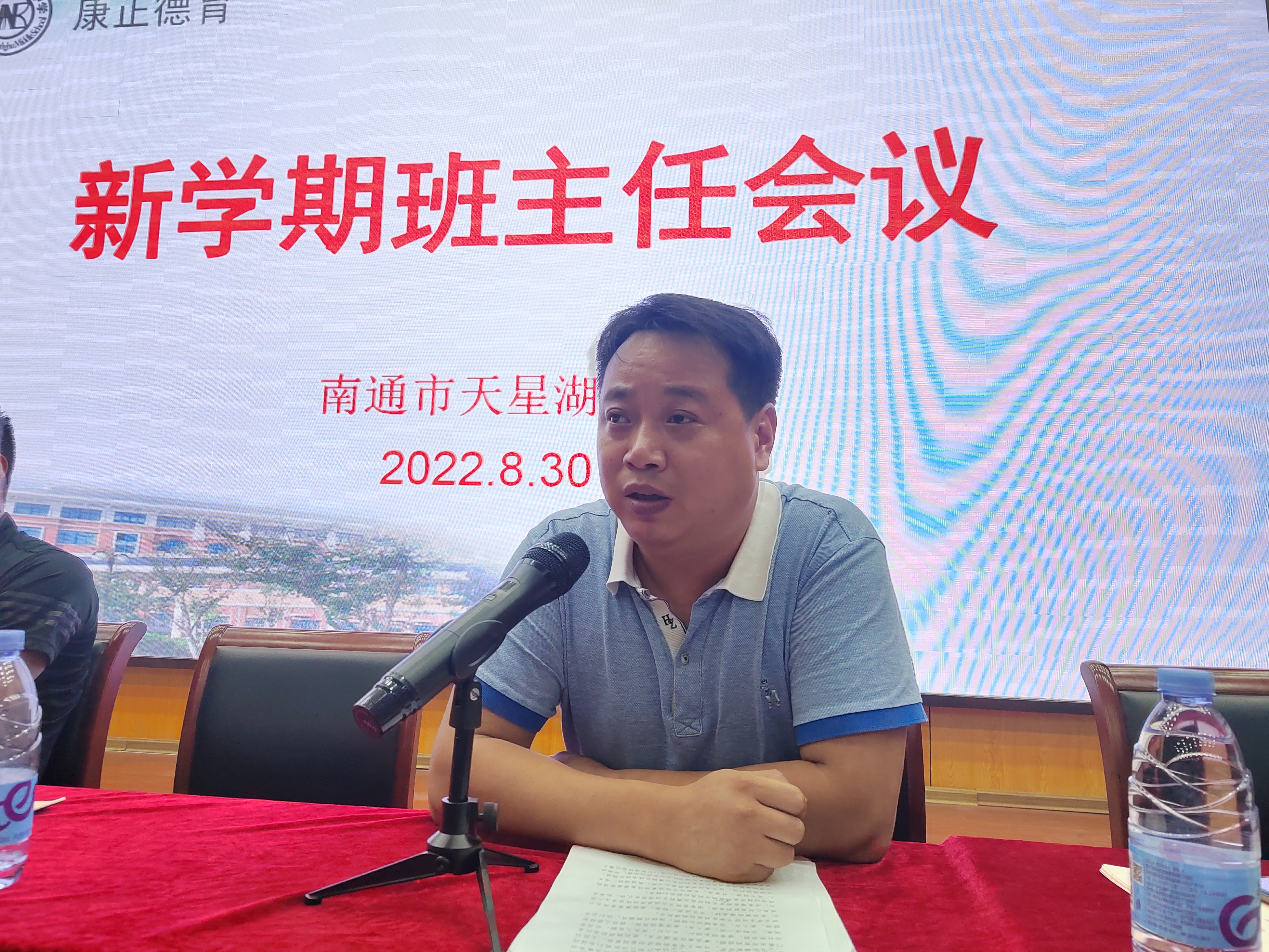 秋季是新学年的开始,也意味着踏上新的征程,点燃新的希望。为了提高班主任整体素养,进一步增强班级管理工作的实效性,减轻班主任肩上的“重担”,提高学校德育工作和班级管理水平,8月30日下午,新学期第一次班主任工作会议在校滋兰楼报告厅召开。学校德育工作校长吴冬杰、其他德育线全体领导、全体班主任参加了会议,会议由学生处王东主任主持。