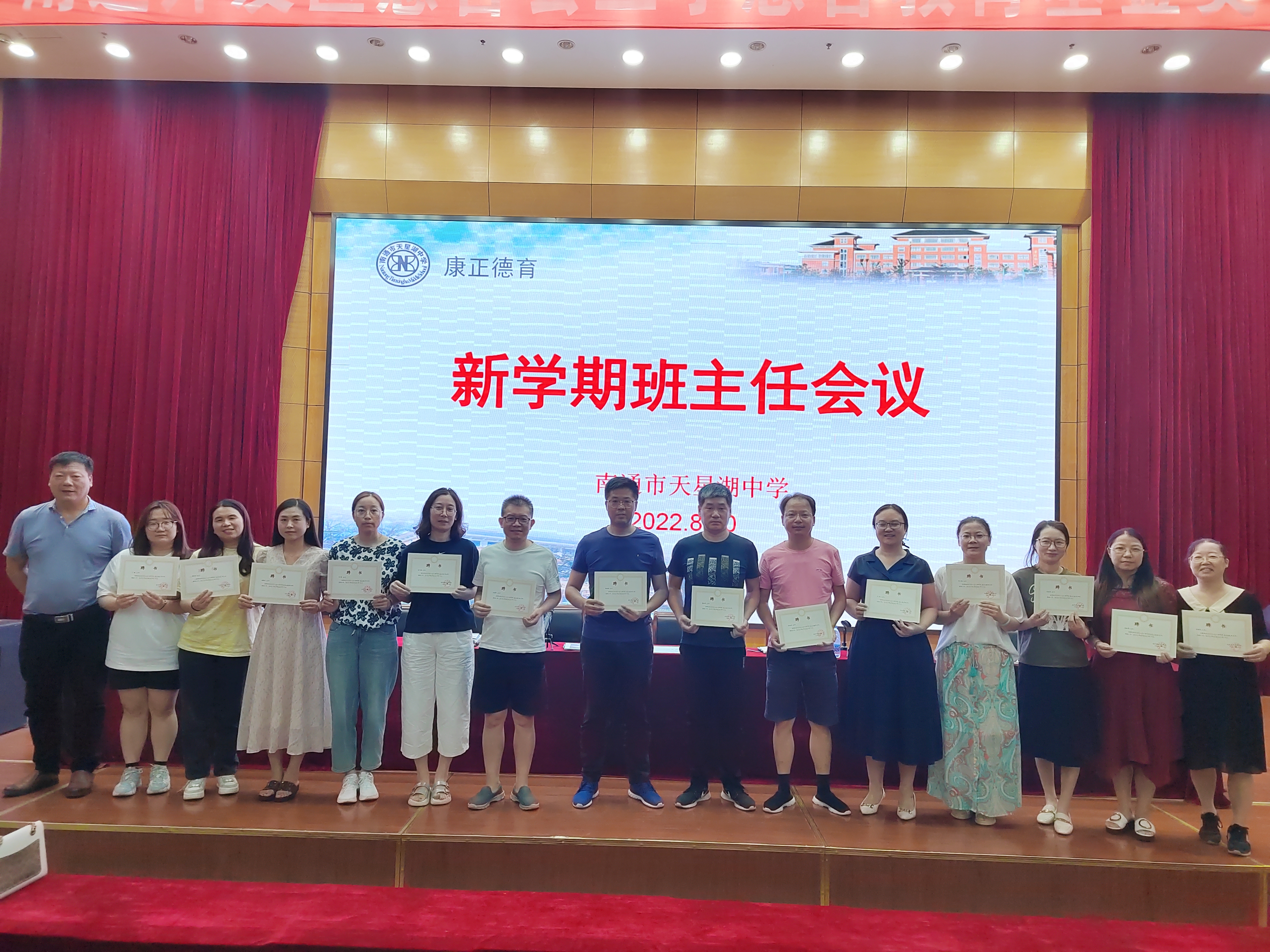 会议结束后,德育线领导表彰了上学期的优秀班主任,并给新一届班主任颁发聘书。