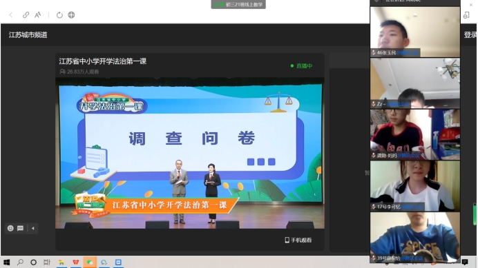 为深入贯彻习近平法治思想,加强青少年法治教育,提高青少年法治意识和法治能力,9月1日下午,我校组织全体学生在线观看了由省教育厅、省法院、省司法厅、省国安厅、省广电总台联合开展的主题为“一样的课堂,不一样的说法”的开学法治第一课。活动聚焦中小学生和家长普遍关注的未成年人保护法、预防未成年人犯罪法、家庭教育促进法等法律法规,通过法治情景剧、亲子游戏、法官释法等形式,带领中小学生和家长沉浸式学法。