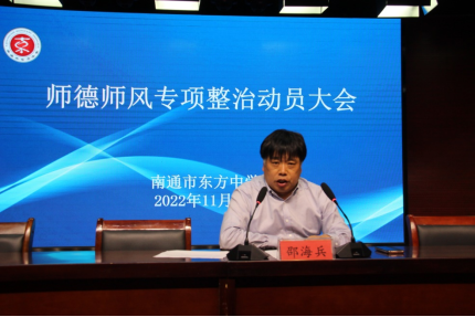 11月7日中午,东方中学在西区报告厅召开了全体教职员工师德师风专项整治动员大会。会上,邵海兵校长作了重要讲话。