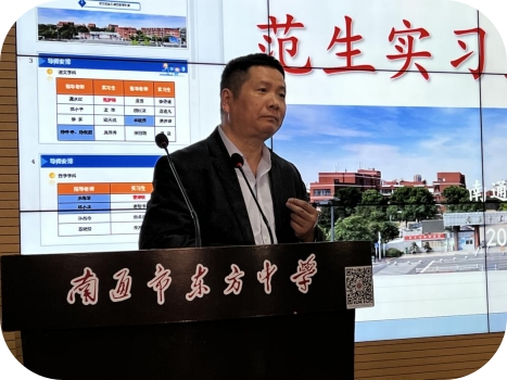 王桂玲主任为实习老师们介绍了东方中学的基本情况及相关的防疫要求并对实习老师的工作相关安排进行了详细地说明。东方中学会考虑实习老师的实际情况,尽全力为实习老师提供便利。实习老师在实习过程中遇到教学以及生活上的难题都可以向自己的指导老师反映,彼此之间多多交流,问题一定能够得到妥善地解决。同时,王主任也表示希望实习老师们能在各自指导老师的点引下,实践验证理论,破茧成蝶,成长自己,为将来走上三尺讲台累积第一桶“经”。
