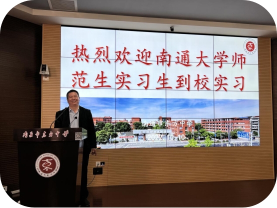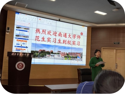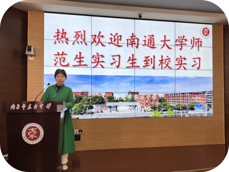 南通大学带队领导袁彬教授上台发言,袁教授要求同学们要快速把自己的身份转变成实习老师,严格遵守实习学校的规章制度,珍惜实习机会,争取在把自己的优点带到学校的同时也尽可能地从学校汲取更多的营养和知识,为自己成为一名合格的教师打下基础。