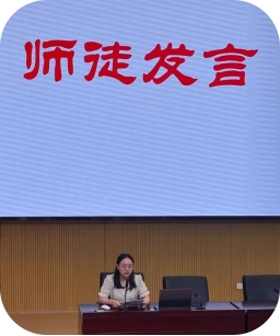 党总支书记蒋子平的讲话温暖着每一个人。此次青蓝结对仪式是青年教师成长的平台,希望在今后的教育教学工作中,师徒双方教学相长,更希望青年教师“青出于蓝而胜于蓝”。