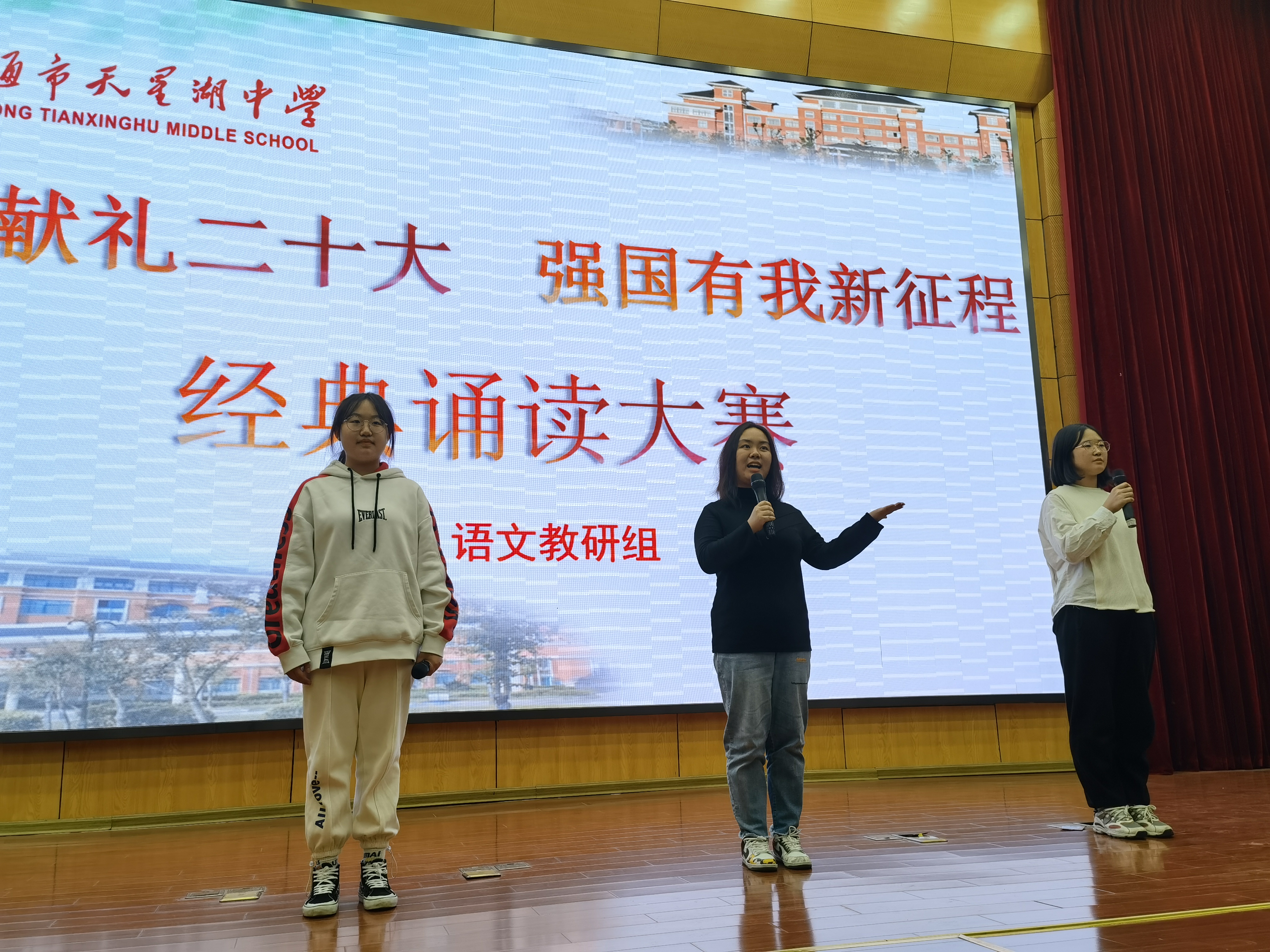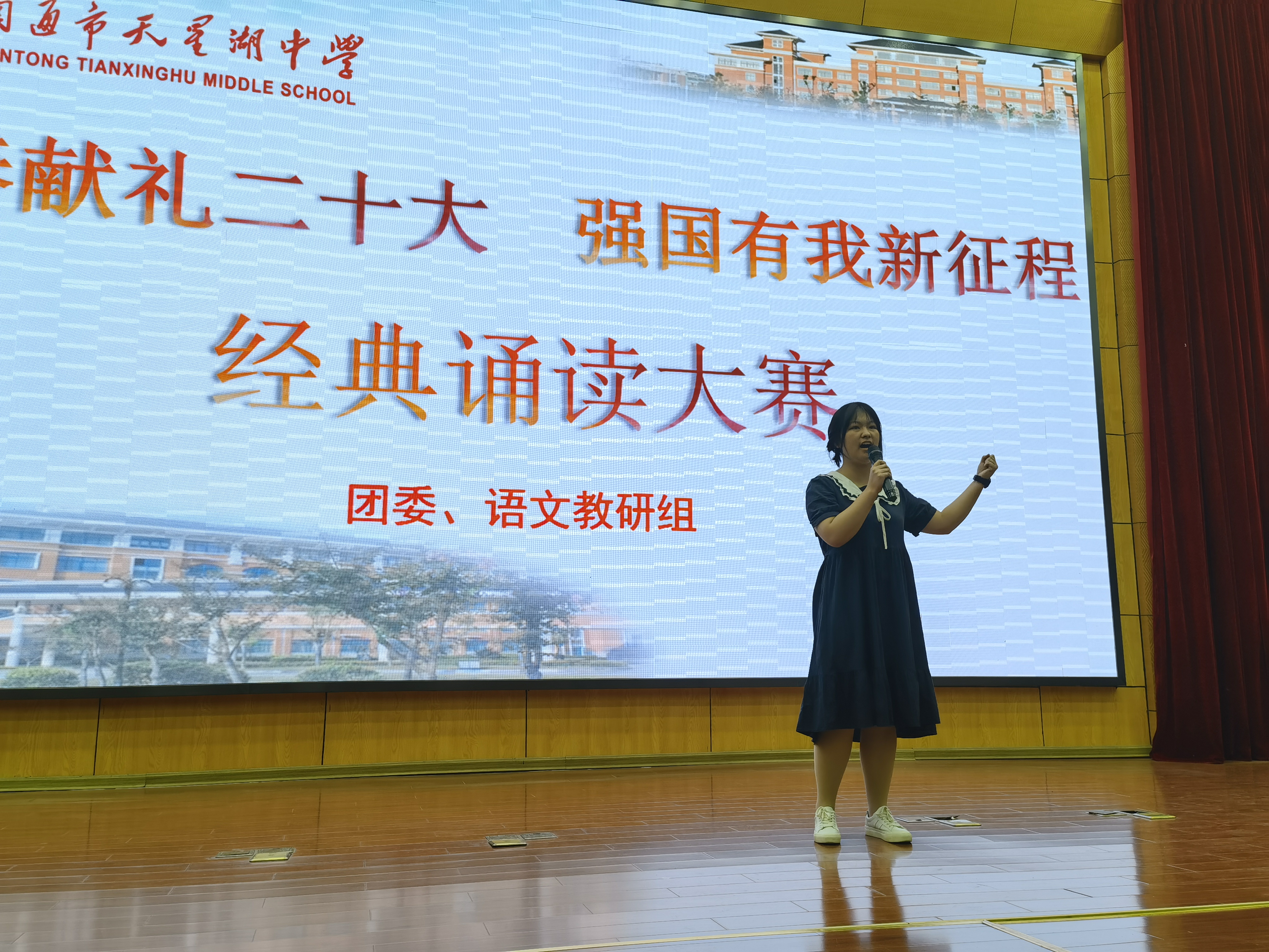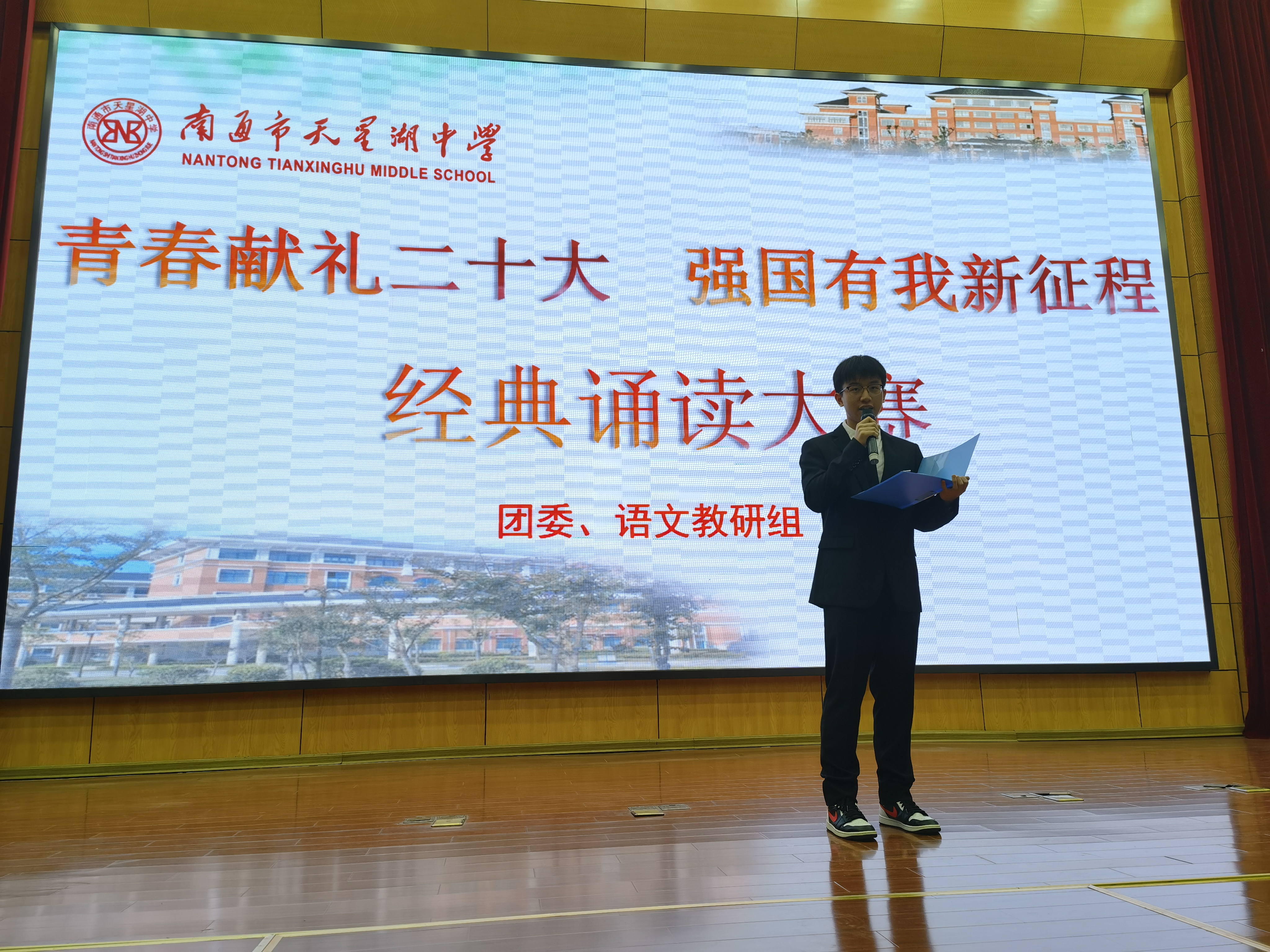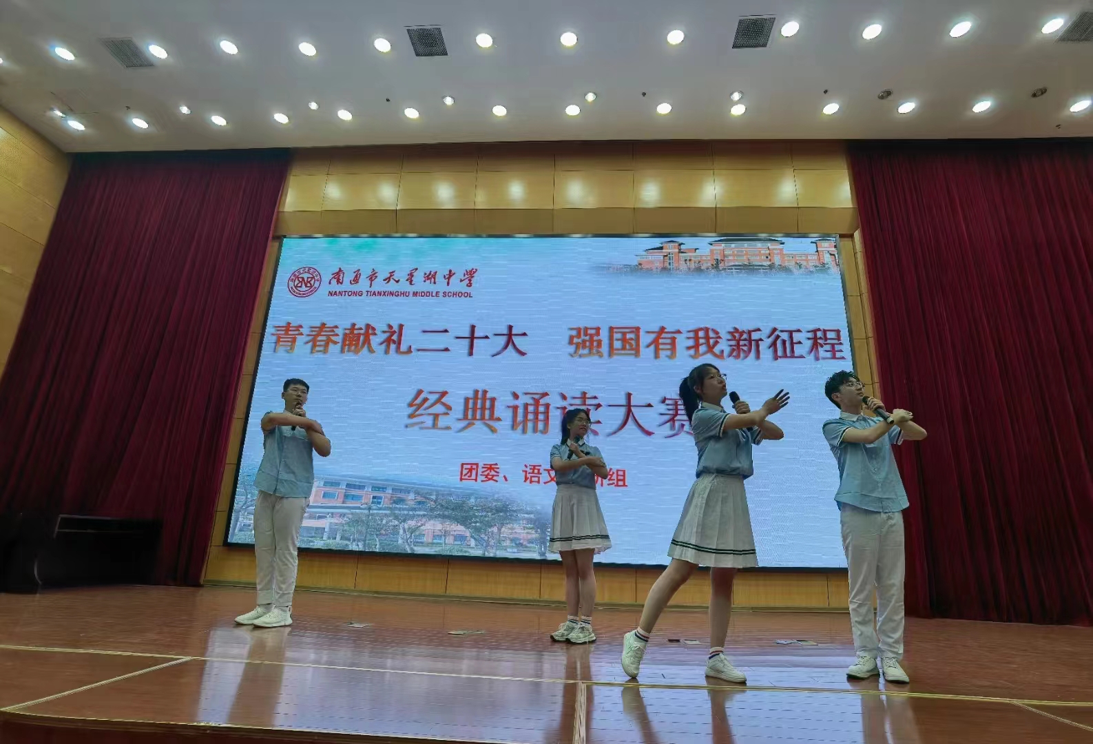 10月12日晚上,南通市天星湖中学在校报告厅举行了“青春献礼二十大 强国有我新征程”经典诵读大赛,共享诗文盛会。