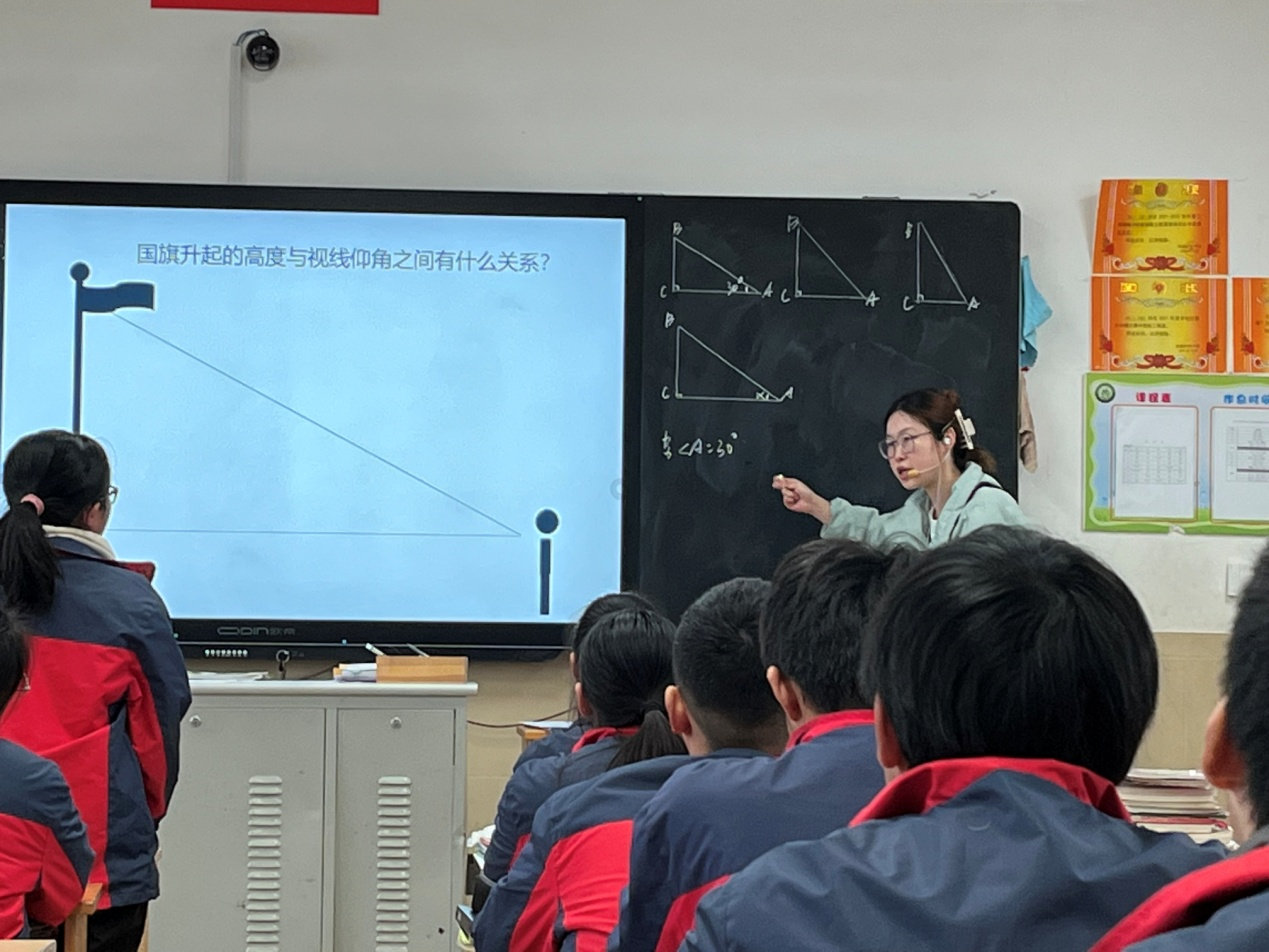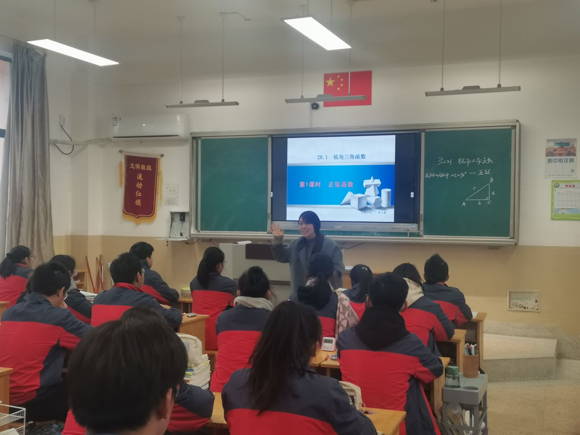 川港中学的单小燕老师和我校的周月明老师共研数学课《锐角三角函数》,他们通过实物、教具引导学生在理解的基础上掌握知识,给学生充分观察和实际操作的机会,让孩子们体会到数学来源于生活,从而激发学生学好数学的兴趣。