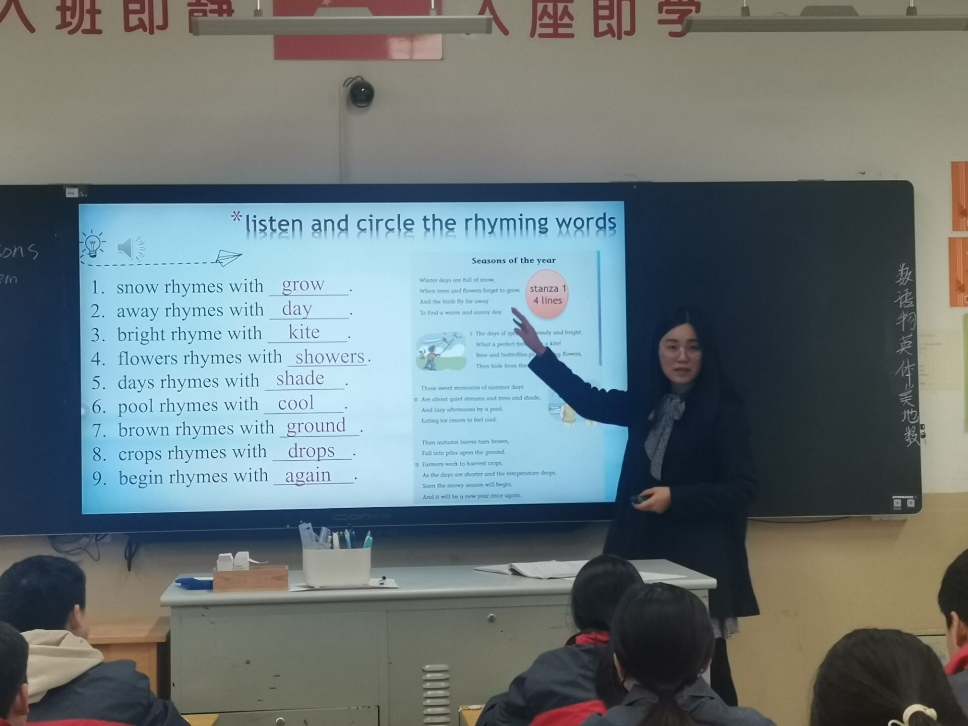 川港中学的沈娟老师和我校的韩丽老师引领孩子们赏析了英语诗歌《Seasons》。两堂课都精心设计问题,让学生深入文本,精读课文,课堂轻松愉快,孩子们被英语诗歌的魅力深深吸引,课堂效果明显。