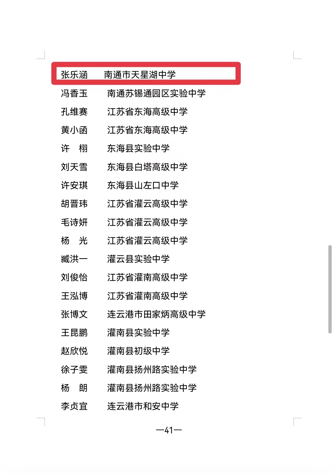 我校张乐涵获2022年度江苏省“最美中学生”称号