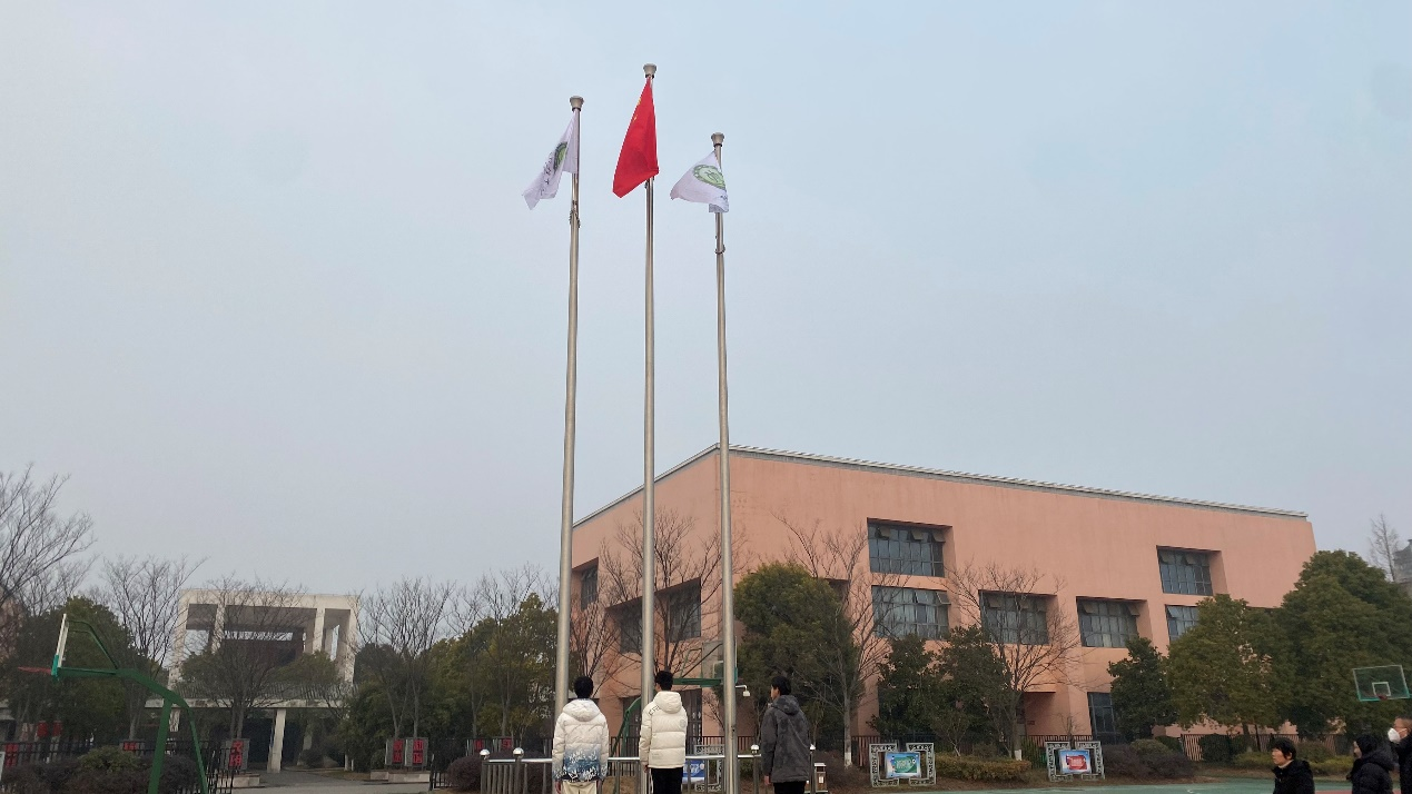 伴随着雄壮有力的国歌声,典礼正式开始。五星红旗冉冉升起,全体师生立正肃穆,向国旗敬礼。