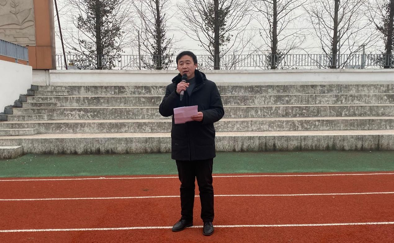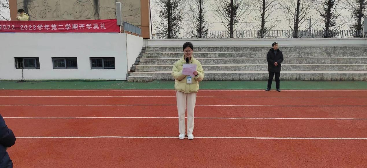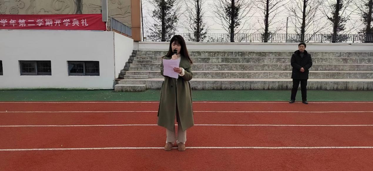 教师代表黄佩佩老师发言。黄佩佩老师以新春档电影《满江红》中的“莫等闲,白了少年头,空悲切!”一句劝勉同学们不要虚度年华,要在新的学期为实现自己的美好梦想而努力奋斗。