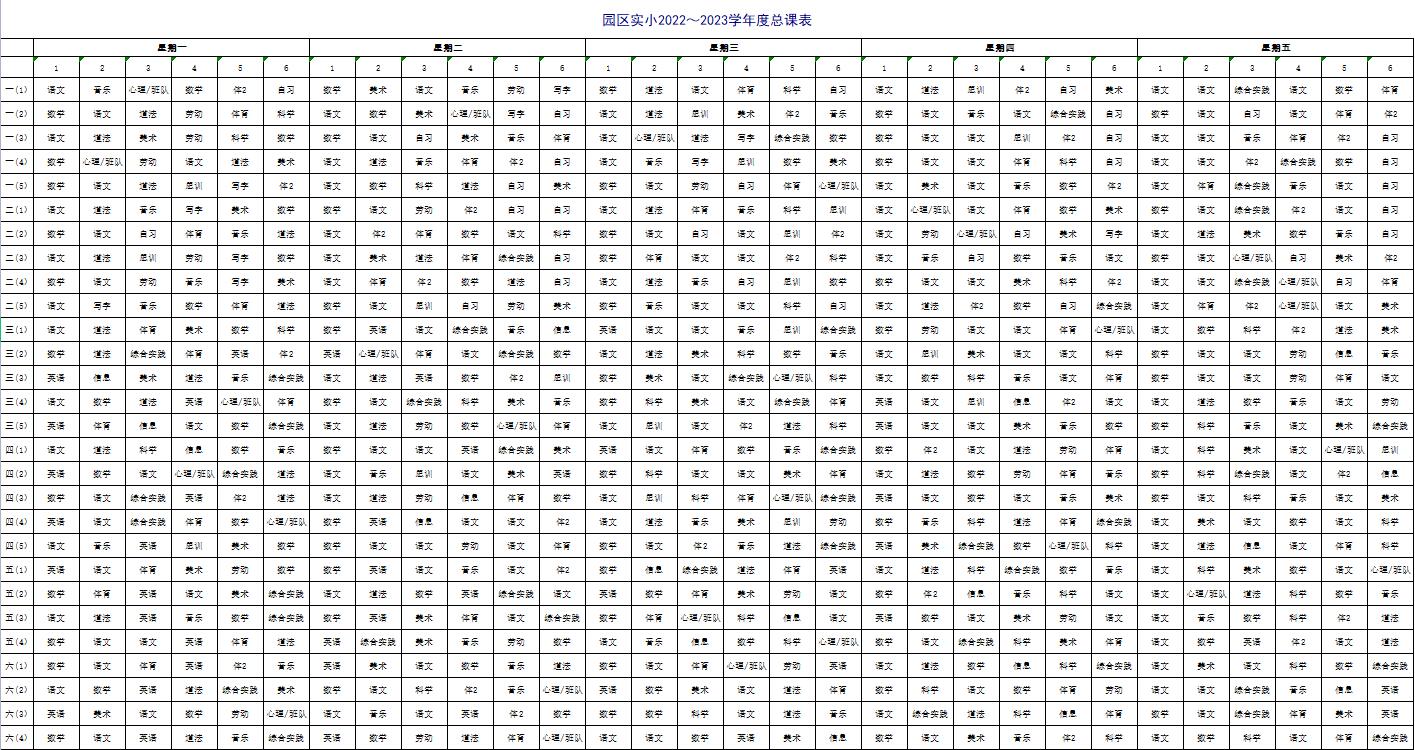 南通市苏锡通园区实验小学2022-2023学年度总课表及体育教师课表