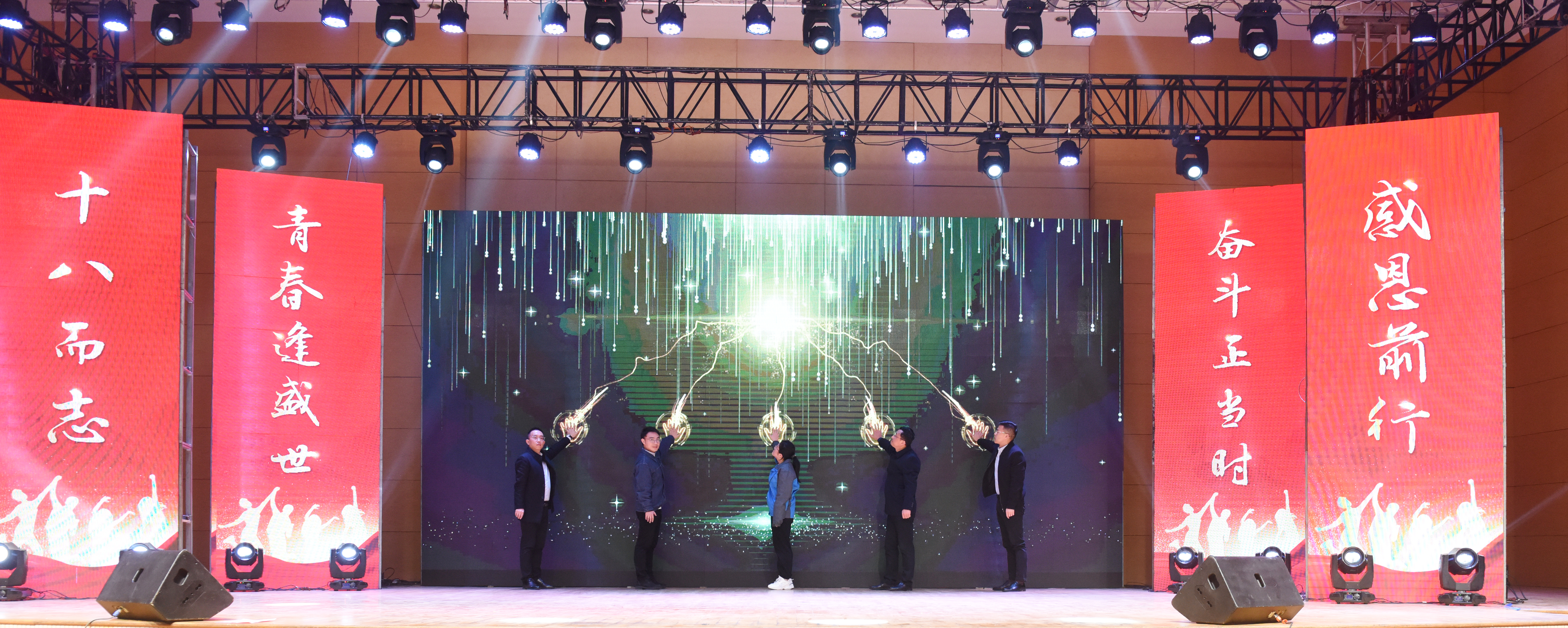 随后,学生代表李倩同学、陈箭书记、陈跃副校长、马华副书记和吴冬杰副校长上台共同“点亮”成人礼花。在这个最值得自豪的日子,在师长、朋友的面前,让满载我们的理想的礼花,亲吻广阔的蓝天吧!