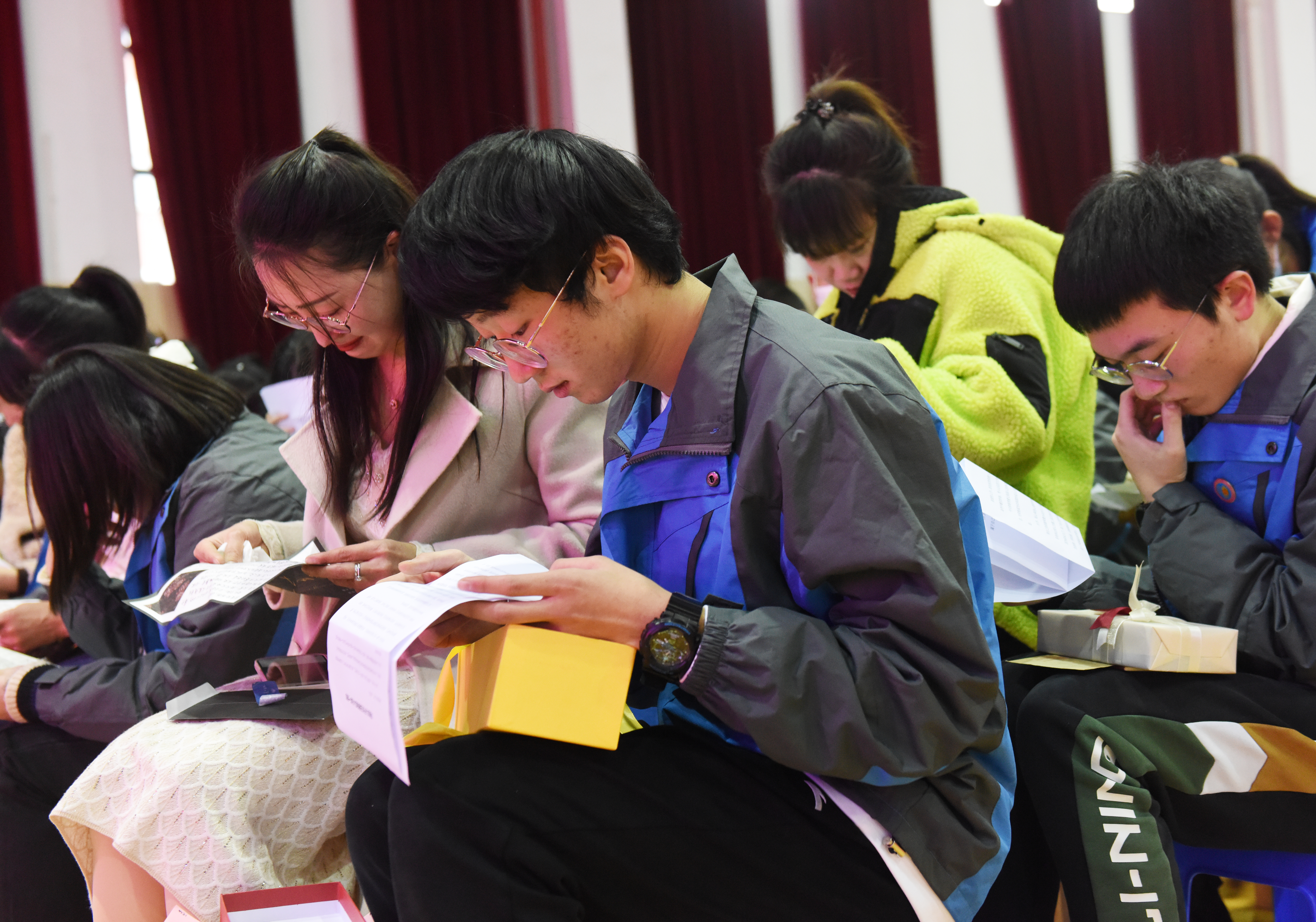 18年的付出与艰辛,让父母的额头多出了皱纹、两鬓增添了白发。十八载春秋,我们的长辈充满了多少期盼。随后,家长和子女相互交换了“写在十八岁成人之际”的信件。在主持人的倡议下,所有同学和父母深情拥抱,许多家长和同学都流下了感动的泪水。
