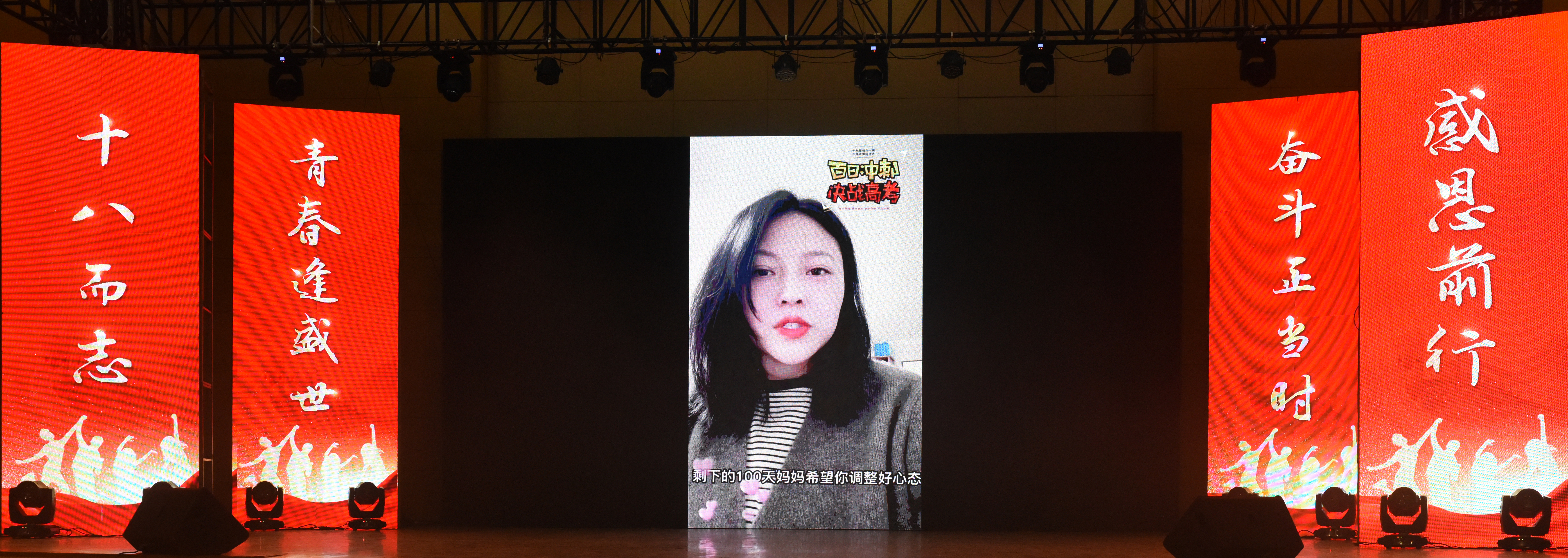 接着,学生代表高三1班李倩同学代表所有高三学生发表成人感言。在发言中,她感谢了一路陪伴的父母、互帮互助的同学、诲人不倦的老师,并且在距离高考恰好百日的特殊日子,与同学们激情约定:书海的沉浮已不再让我们动容,风雨的磨砺只会让我们愈挫愈勇,我们的目光从来没有这么坚定,相信播下的种子、洒下的汗水,在六月一定能收获丰硕的成果!