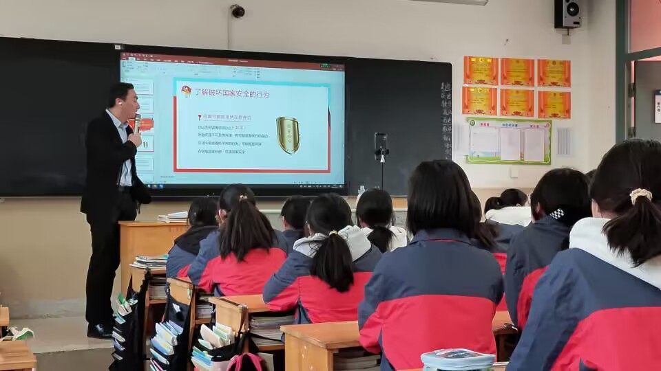三月芳菲,法香致远。为践行总体国家安全观,提高青少年国家安全意识,强化校园师生安全防范意识和防护能力,3月28日,南通市竹行中学特邀北京大成(南通)律师事务所陈嘉桢律师为我校学生开设了一场以“国家安全日”为主题的法治讲座。
