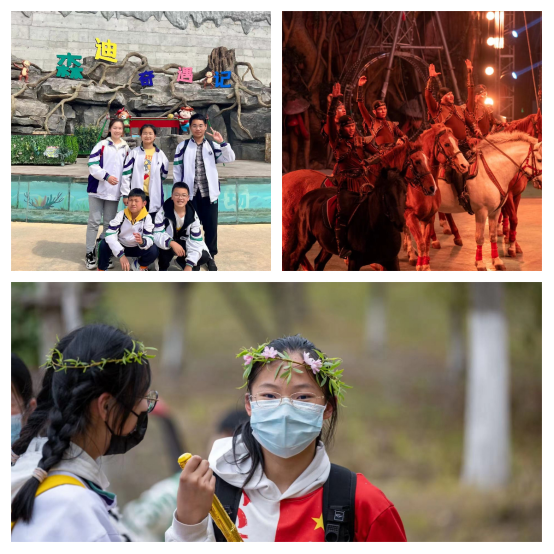 清晨,同学们早早列队,整装待发。看,汽车行驶在美丽的旅游大道,道路两旁绽放的花儿热烈欢迎着大家的到来。