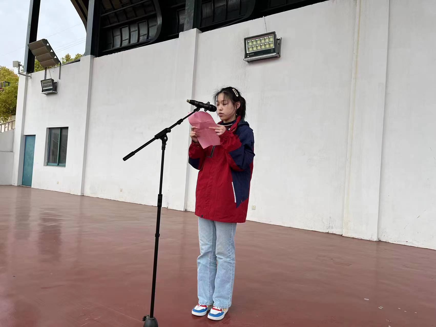 高一4班李可欣做了题为《增强安全意识 远离危险隐患》的演讲。她向全体同学倡议:真正提高安全意识,注意活动安全,关注自身心理安全,遵守交通规则的交通安全等,让自己的青春和生命散发出灿烂的光彩。
