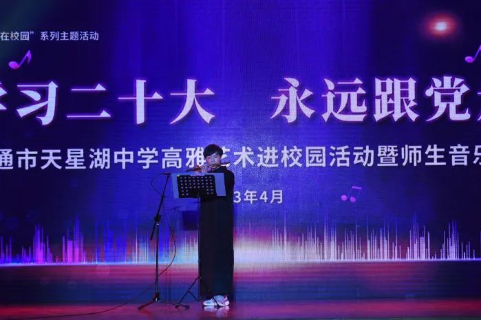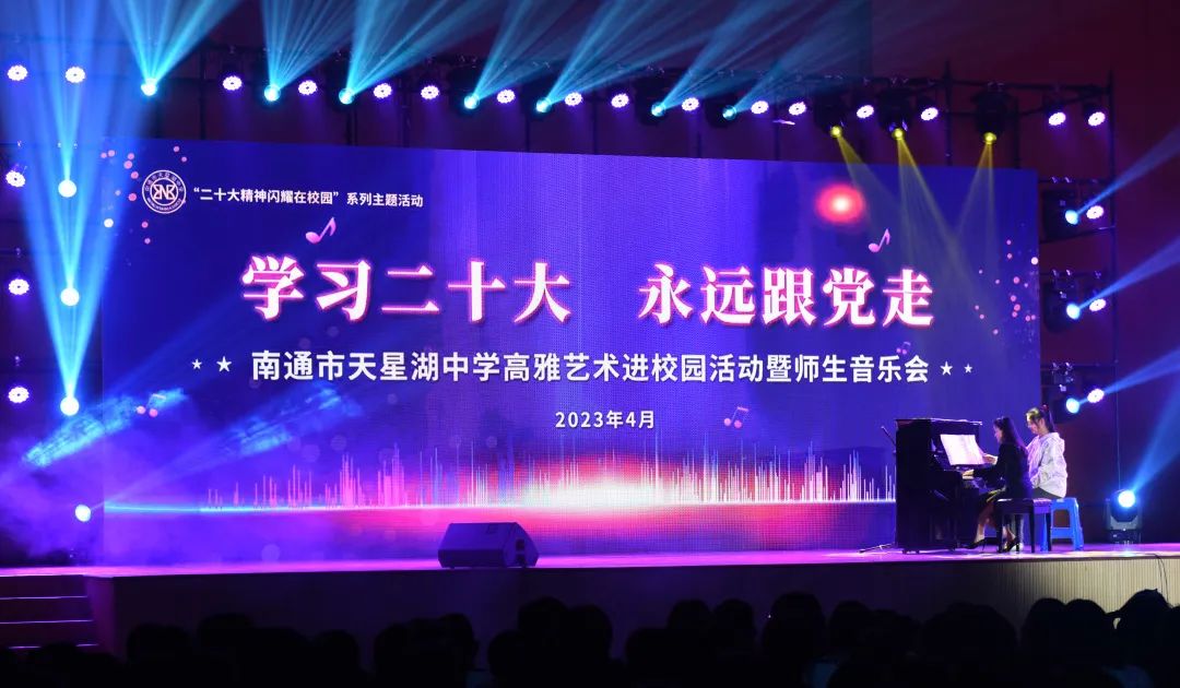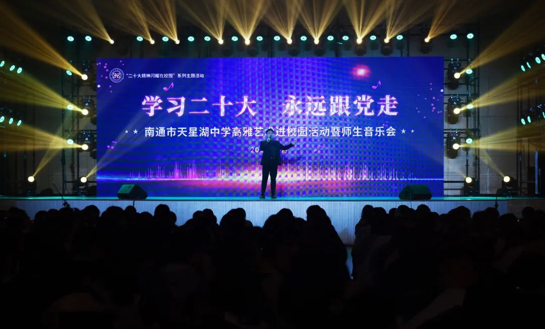 为全面深入学习领会党的二十大精神,引导青少年自信自强、守正创新,践行“请党放心,强国有我”的铮铮誓言,4月9日晚,我校在风雨操场成功举办了高雅艺术进校园暨师生音乐会活动。无论是业余爱好,一技之长的培养发展,一直到高层次的艺术修养,音乐已经得到了越来越多人们的青睐,成为人们精神生活不可缺少的一部分。