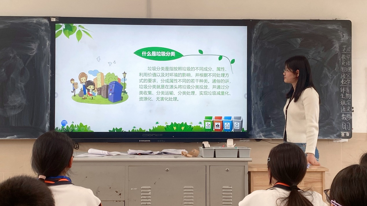 课堂上,各班主任化身为垃圾分类讲解员,就垃圾分类的各项知识与学生展开详细的讲解。班主任先从“什么是垃圾”打开学习的话题,然后从垃圾分类的标志、怎样给日常生活垃圾分类、怎样投放收集等几个方面向同学们进行了具体介绍。