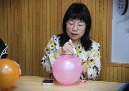 纪老师通过现场评估得出的幸福指数,呈现出了当代教师的压力来源。为缓解压力、提升幸福感,纪老师开展了“我的炸裂气球”环节,通过吹、写、画、定格、踩等,将此次活动推进到一个小高潮。