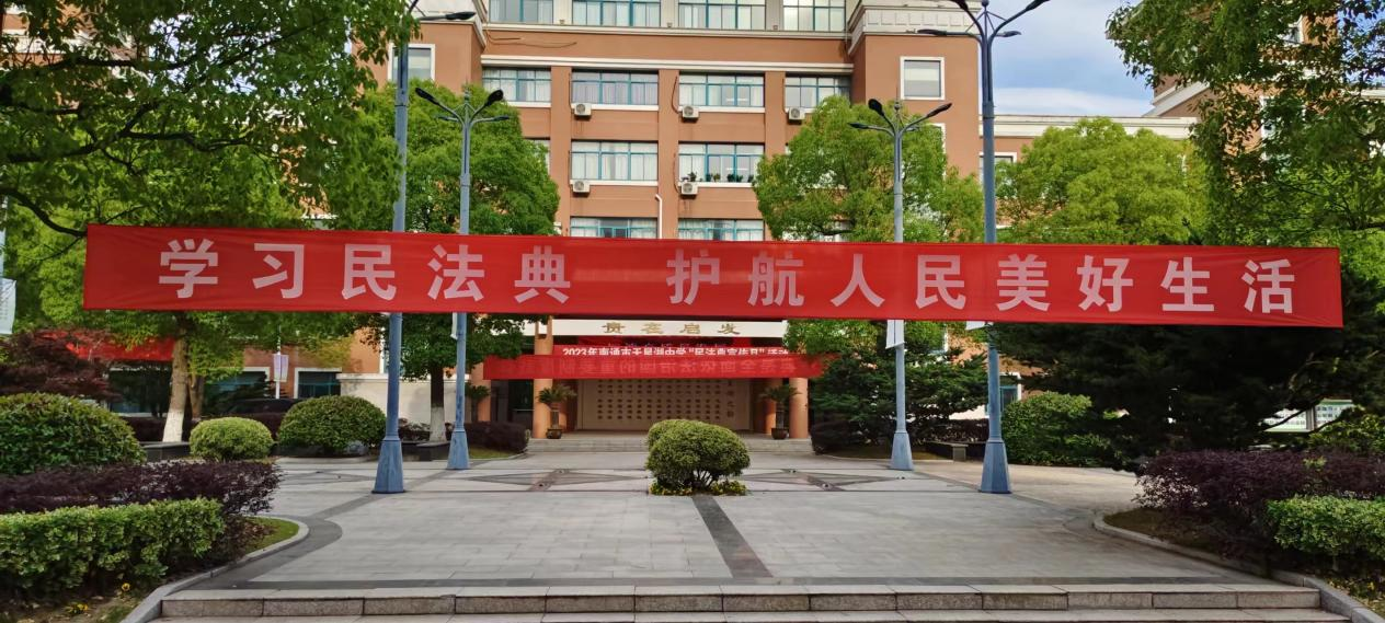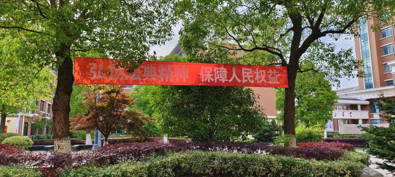 一是《民法典》进校园。学校通过LED电子屏滚动播放、悬挂横幅标语等方式,在全校掀起学习民法典的热潮。