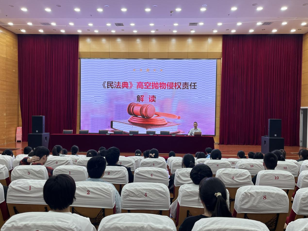 二是《民法典》进课堂。各班召开“《民法典》进校园 法律保驾护航”主题班会,班主任深入浅出地讲解《民法典》的立法目的、主要内容及重要意义,通过“校园霸凌”“高空抛物”“电信诈骗”等典型案例,告诉学生《民法典》中法律援助及援助范围等内容。