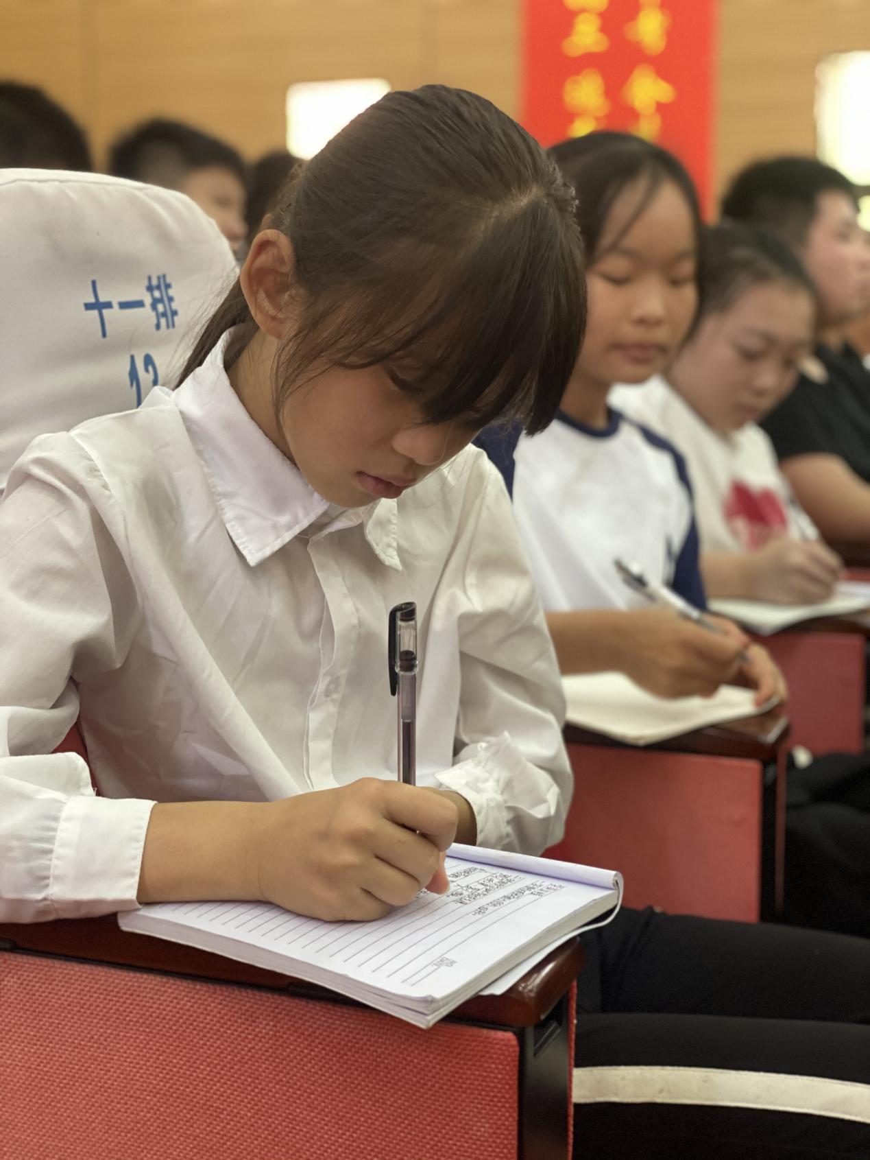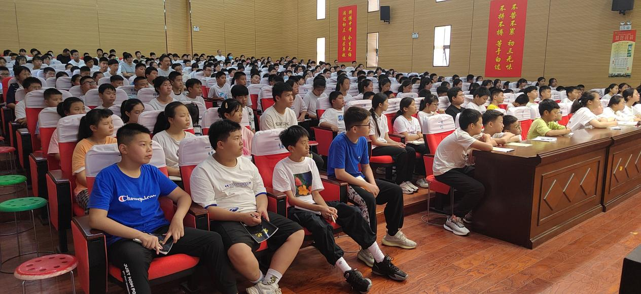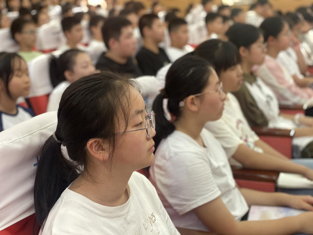 队列训练后,全体新生齐聚报告厅,聆听了学校教务处仇宇隆主任和政教处黄伟健主任关于小初衔接教育的专题讲座。