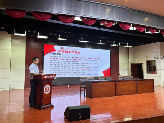 盛夏忽已暮,浅秋正渐浓。为全面做好新学期开学工作,明确新学期各项工作职责与目标,确保各项工作顺利进行、有序推进,8月29日下午,南通市东方中学2023-2024学年第一学期首次班主任会议暨班主任工作培训活动在报告厅召开。政教处主任朱小平主持。