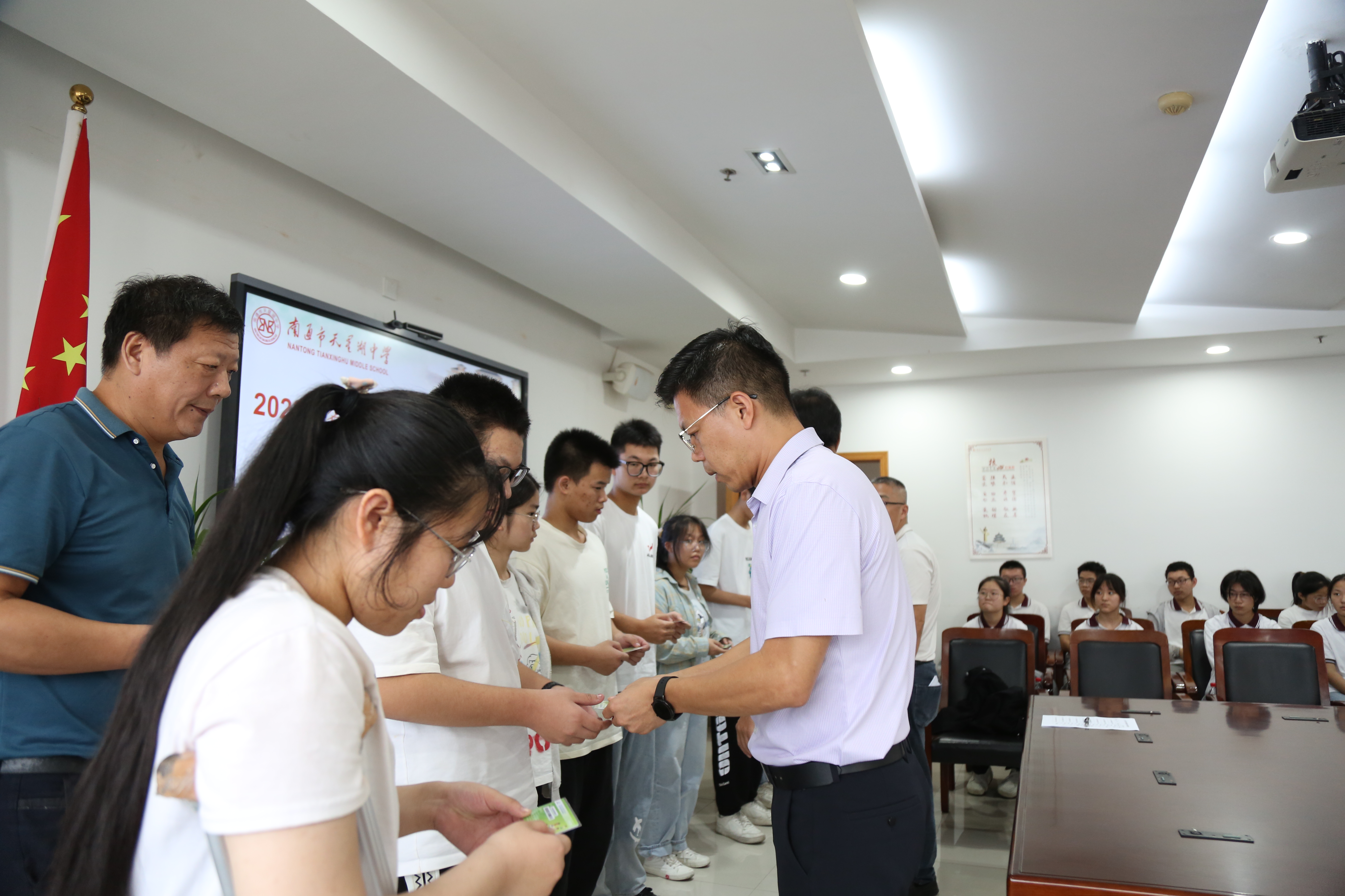 根据江苏省学生资助管理中心《关于做好2023年万名青少年阅读助读卡发放工作的函(苏教助中心〔2023〕12号)文件精神,由省文明办、省教育厅、省全民阅读促进会等联合举办的第三届“江苏青少年阅读季”,继续实施“万名青少年助读计划”。为做好助读卡发放工作,落实“我为群众办实事”要求,我校对在籍的困难家庭学生进行认真遴选,共选出30名学生,并向他们发放阅读助读卡。9月18日下午,我校举行了阅读助读卡发放仪式。南通市学生资助管理中心主任耿建、副主任杨春、副校长吴冬杰、学生处主任曹俊飞等领导出席了活动。活动由曹俊飞主任主持。