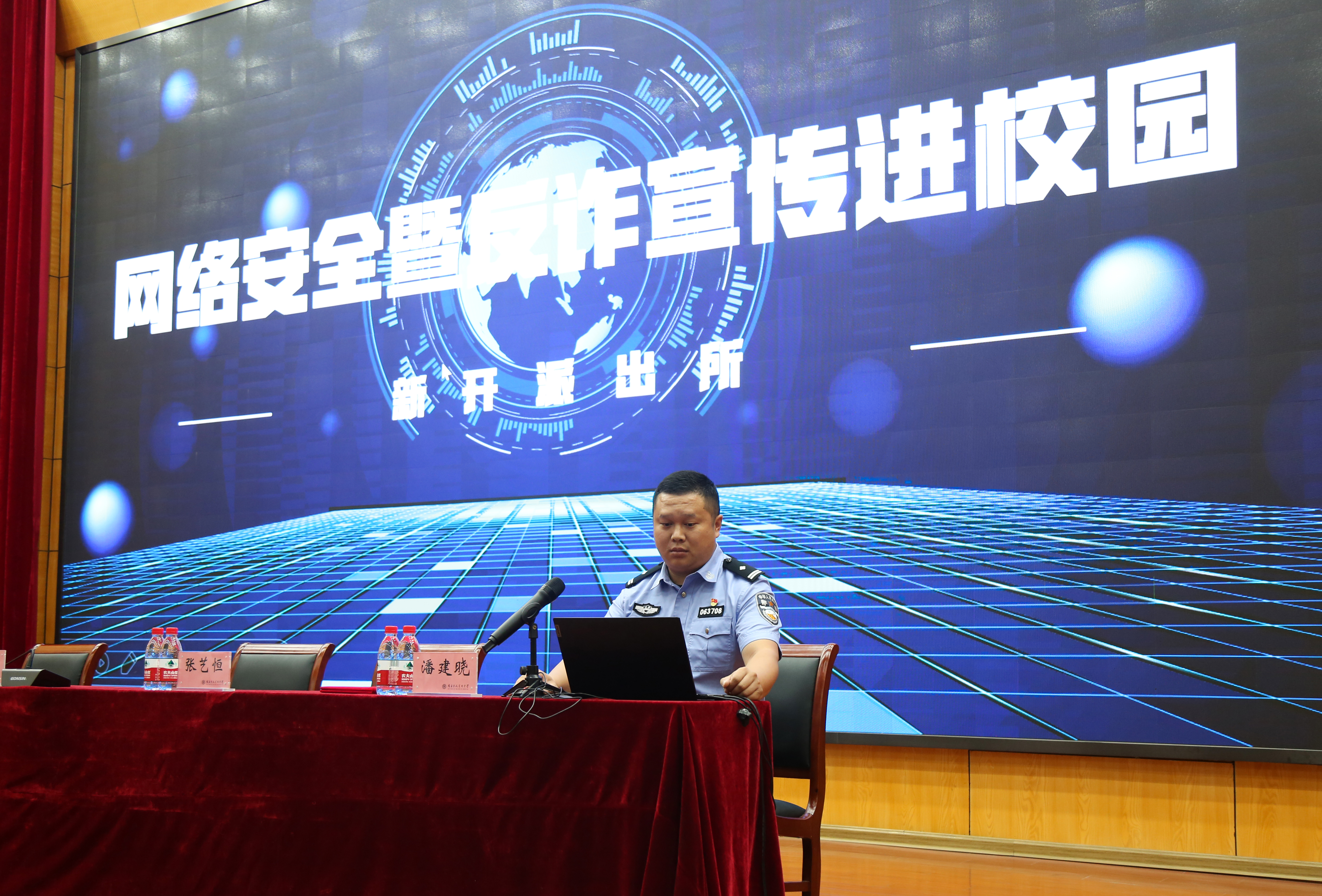 聘任仪式结束后,法制副校长潘建晓警官为现场师生作了《网络安全暨反诈宣传校园》专题讲座。潘警官用工作中遇到的典型案例,通过互动问答的方式,以案释法,以法论事,给师生们普及网络安全与反诈知识,并提醒与会学生自觉抵制不良诱惑,守住法律底线,增强自我保护意识。